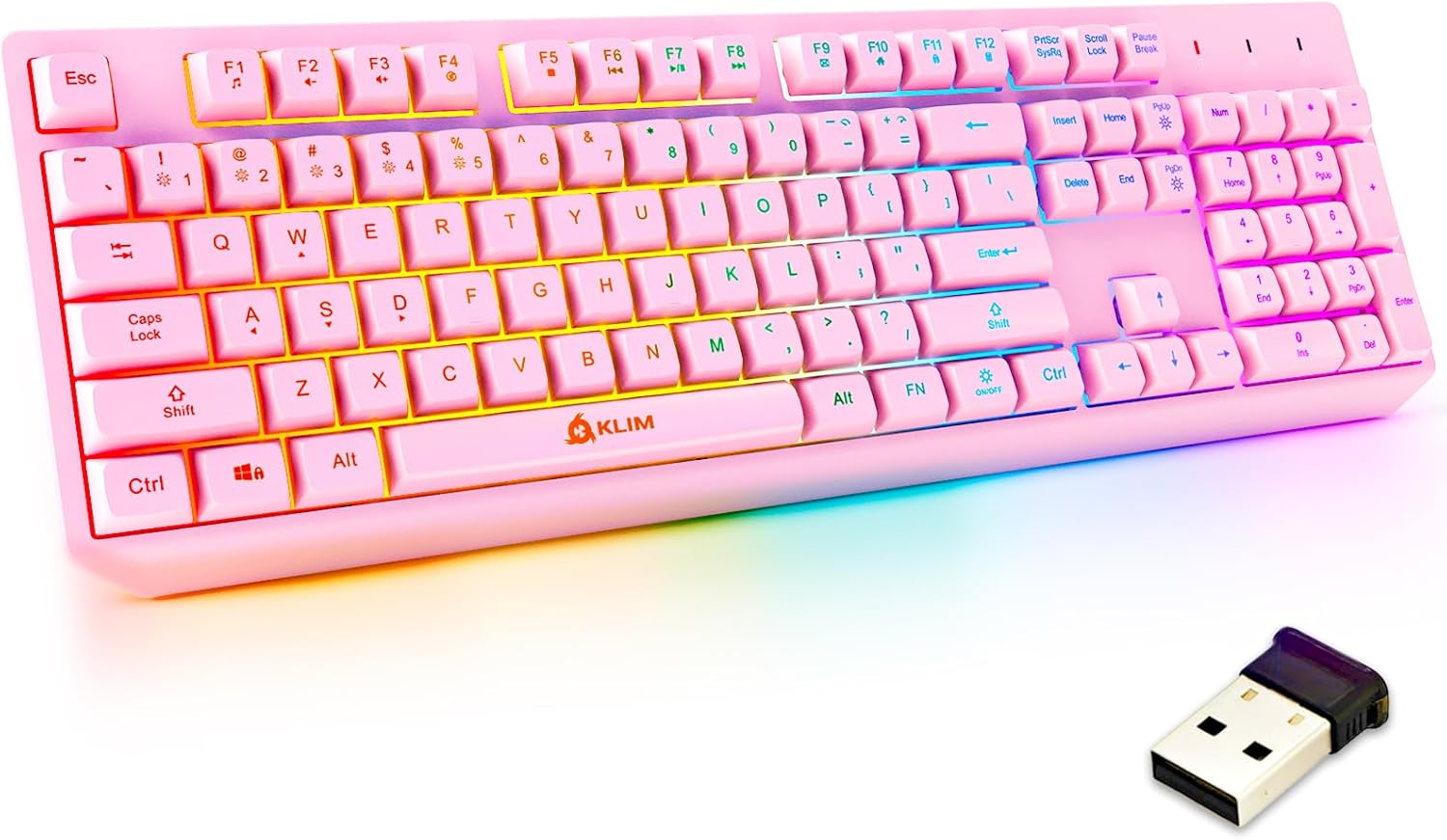 KLIM Chroma Pink Wireless Keyboard – RGB Backlit, Rechargeable Battery, Wireless Keyboard with Water-Resistant Durable Design, Compatible with PC, Mac, PS4, PS5