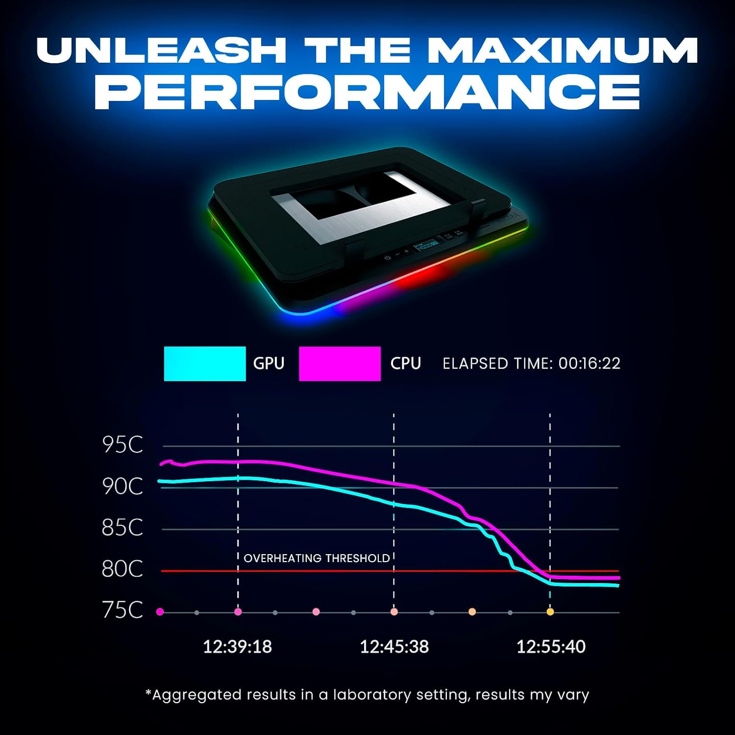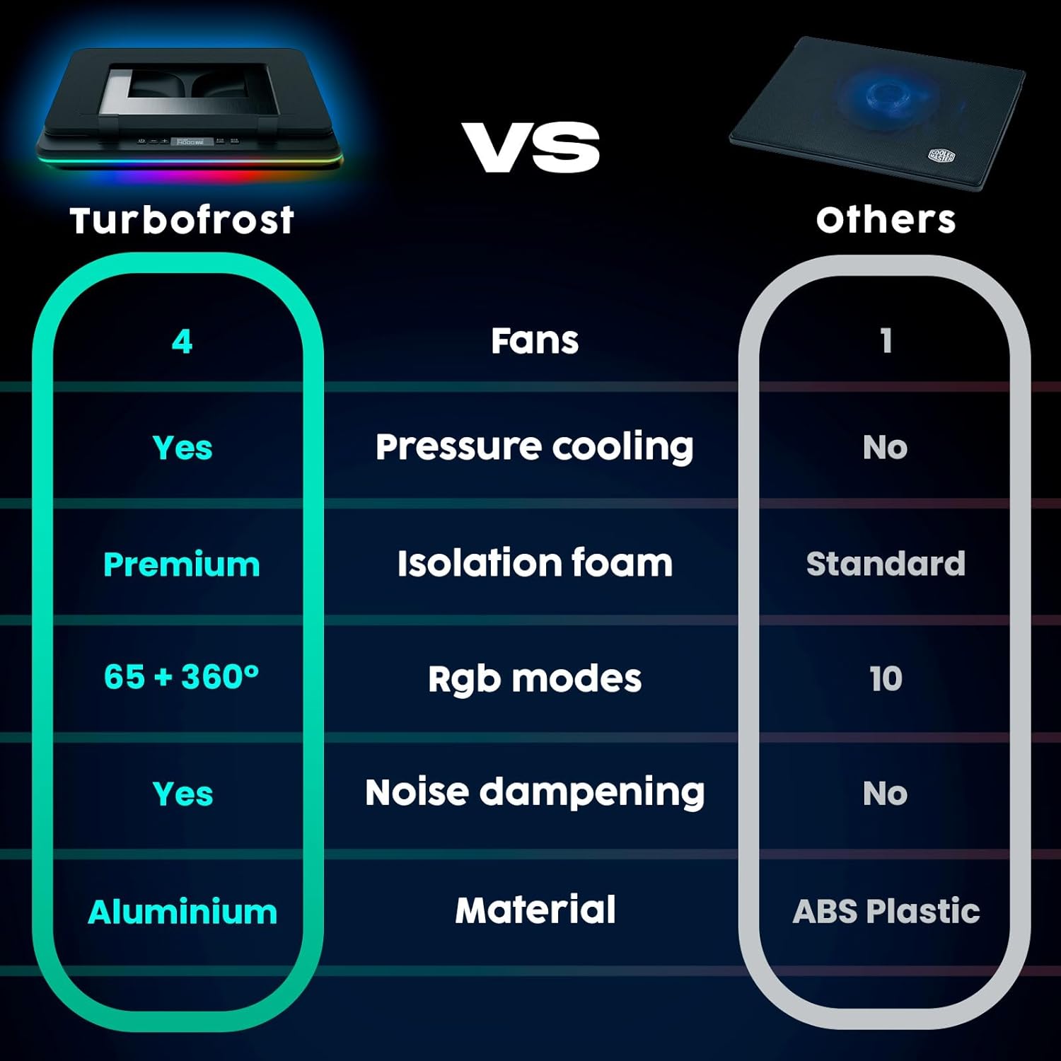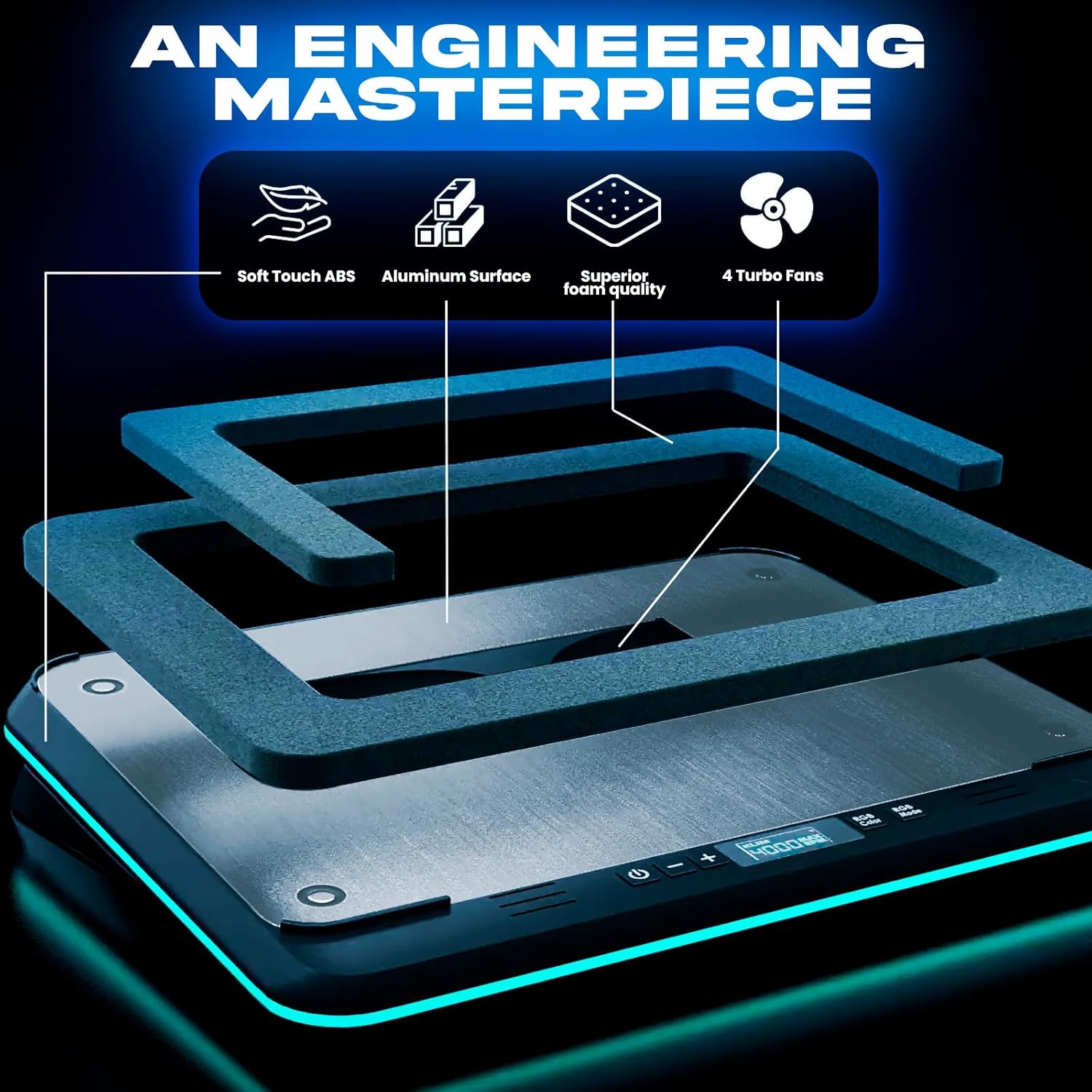 KLIM Turbofrost Laptop Cooling Pad for Gaming – 4 x 4000 RPM Turbo Fans, RGB Lighting, 4 USB Ports, Dual Power (USB-C/DC), Sealed Foam for Fast Cooling – Fits Up to 17” Laptops – Grey Space