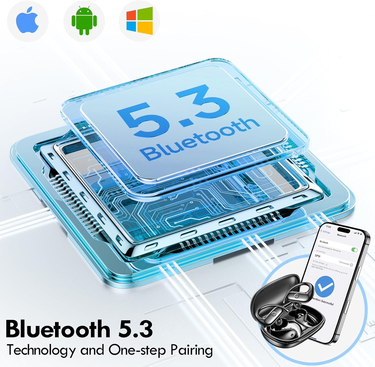 kurdene Wireless Earbuds Bluetooth Headphones Sport,Over Ear Buds with Deep Bass Sound,60Hrs Playtime Earphones Redesigned Comfort Fit with Earhooks for Running,Meeting,Workout-Black