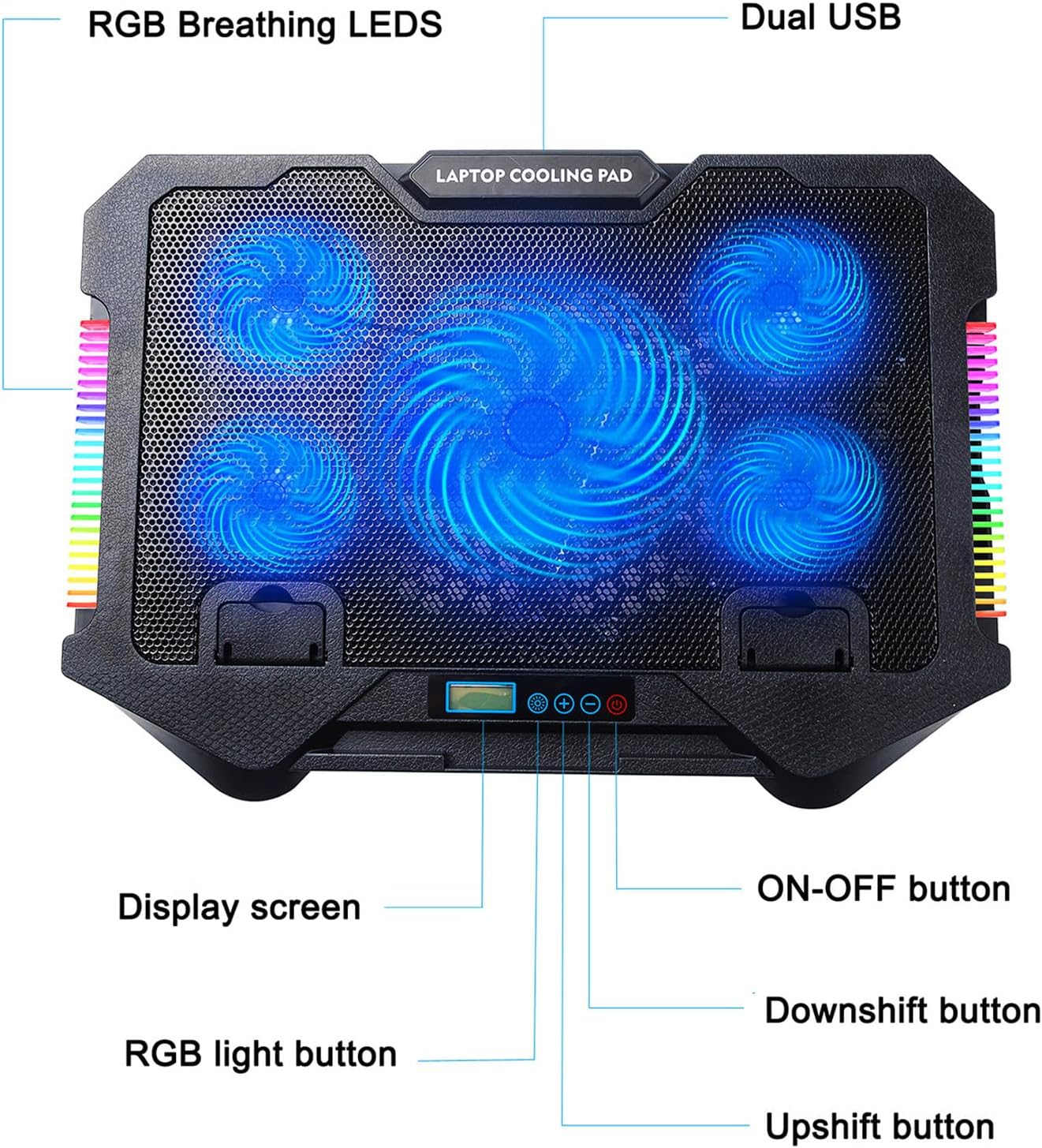 Laptop Cooling Pad Coolers Gaming Fan Stand Adjustable LED Quiet Fan 2 USB Port Heat Dissipation