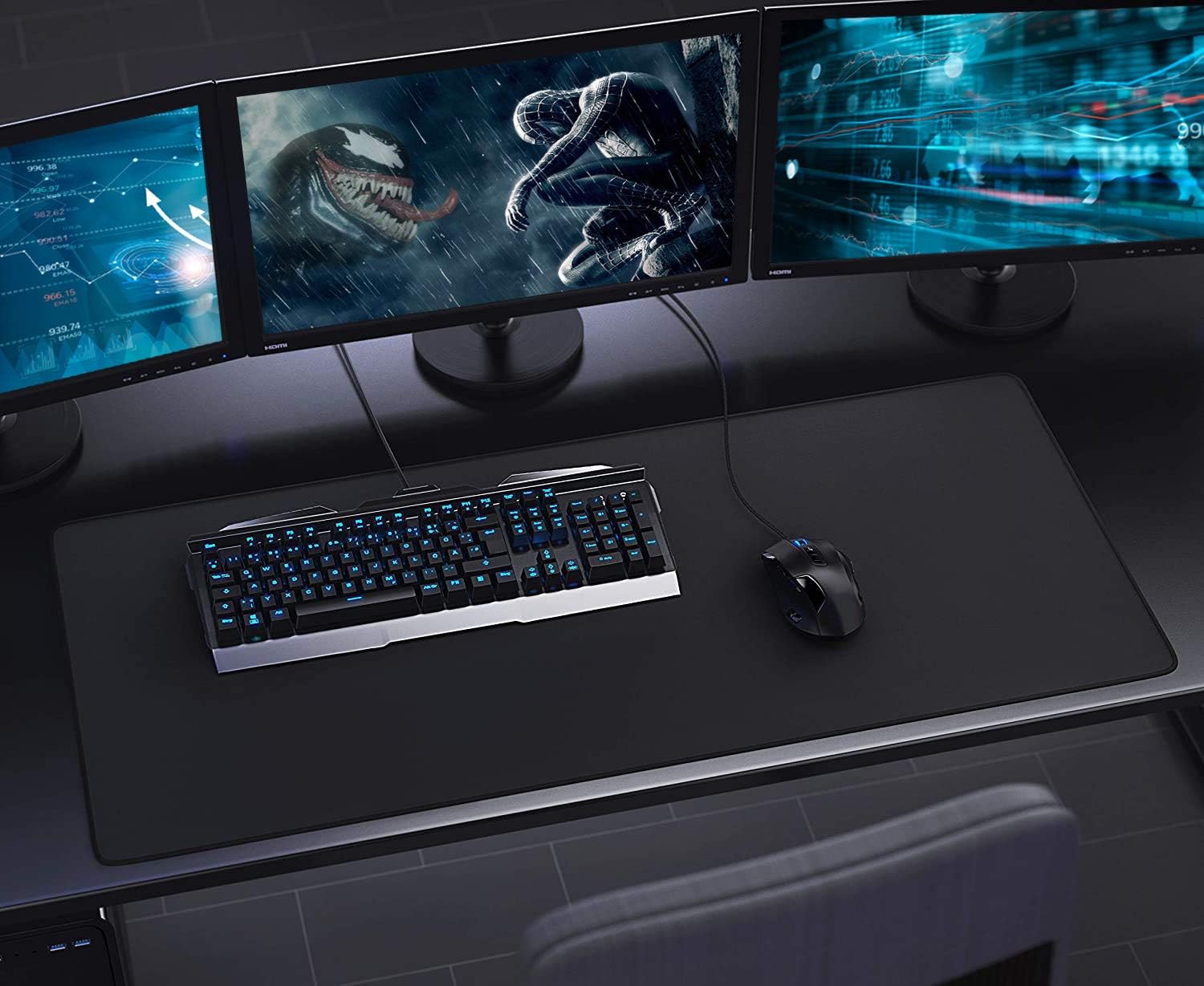Large Extended Gaming Mouse Pad with Stitched Edges, (31.5X15.7In) Durable Non-Slip Natural Rubber Base, Waterproof Computer Keyboard Pad Mat for Esports Pros/Gamer/Desktop/Office/Home-Black