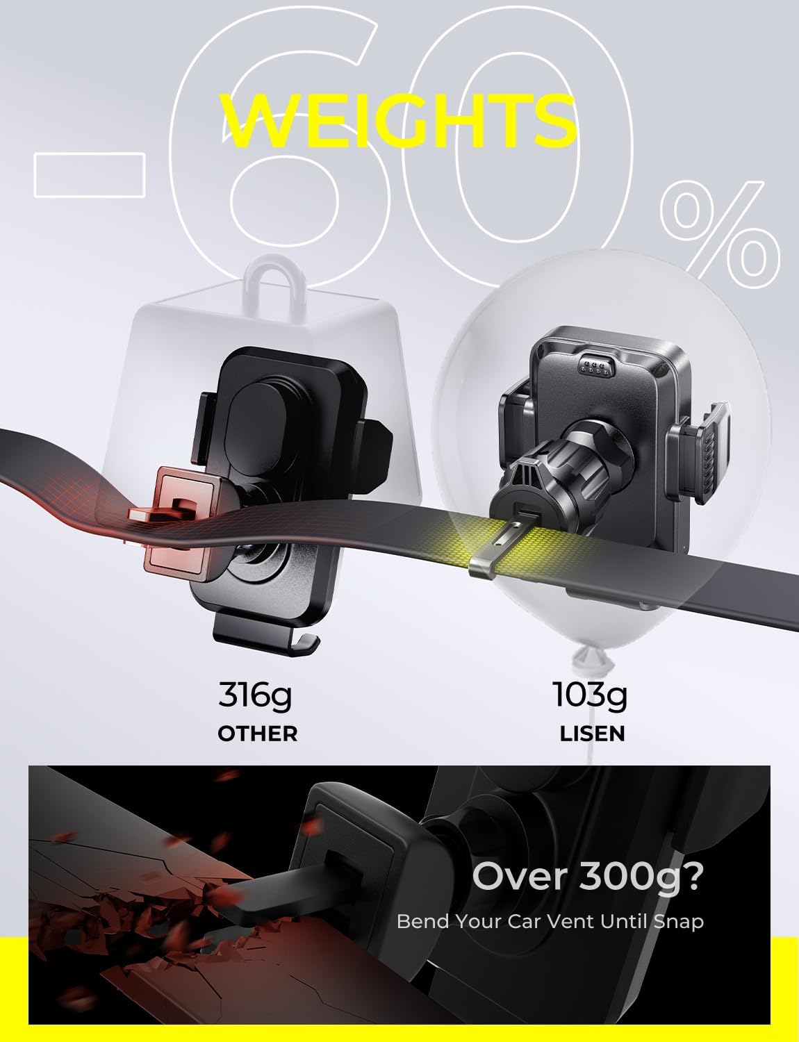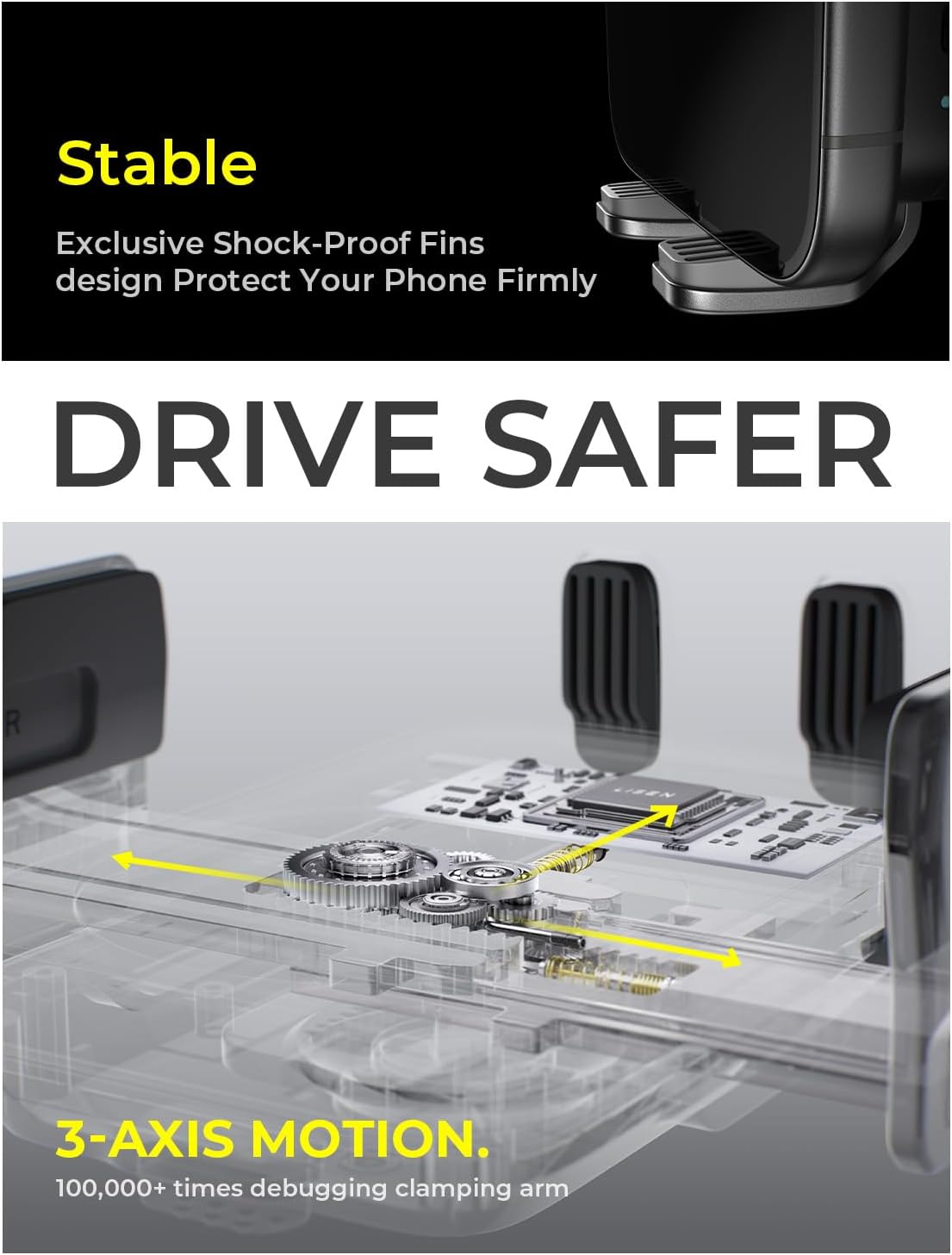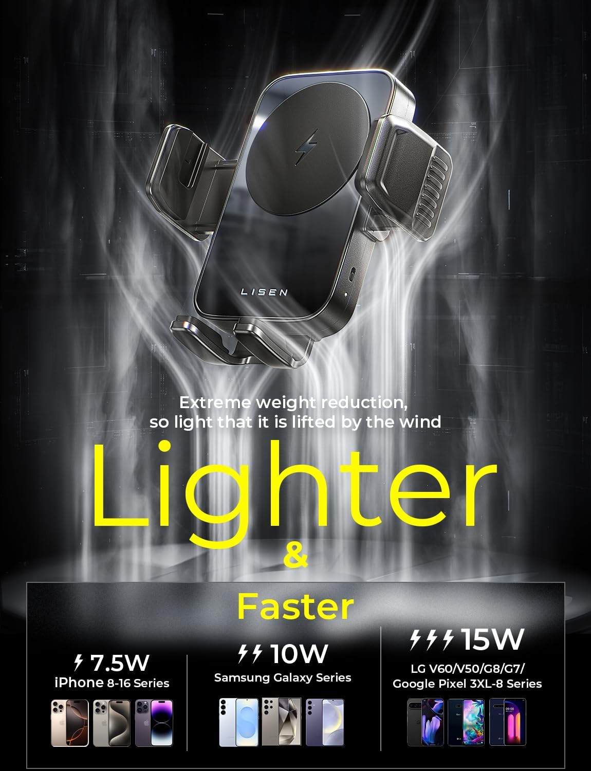 LISEN Wireless Car Charger, 15W Fast Charging Air Vent Phone Mount Car Phone Holder Charger [No Shake] Wireless Charging Mount for iPhone17 16 15 14 13 12Pro Max Samsung Galaxy Series All Smartphones