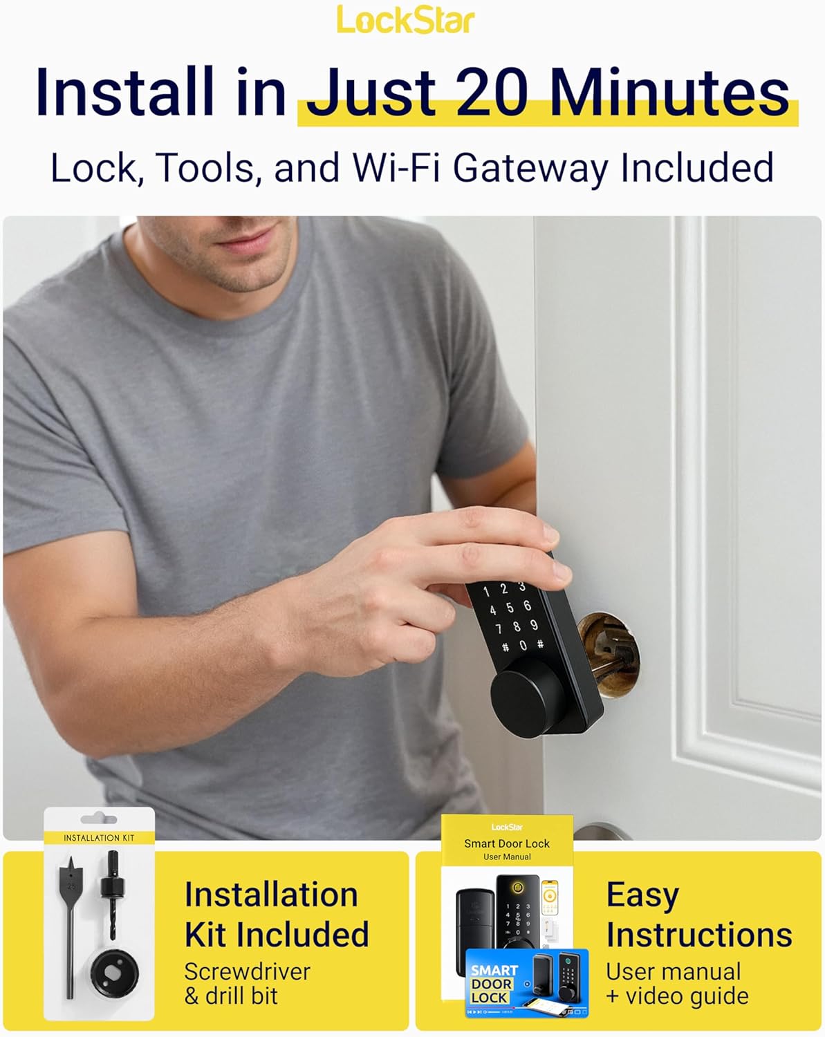 LOCKSTAR® Smart Door Lock • Keyless Entry Deadbolt Door Lock • Multiple Entry Methods – APP • Fingerprint Touch ID • Keypad Code • Card FOB • Traditional Key • Smart Home Devices