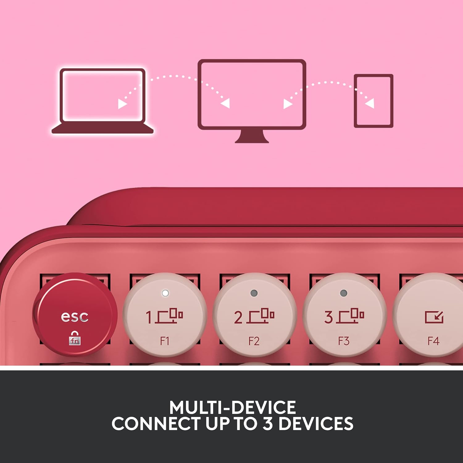 Logitech POP Keys Mechanical Wireless Keyboard with Customizable Emoji Keys, Durable Compact Design, Bluetooth or USB Connectivity, Multi-Device, OS Compatible – Heartbreaker Rose
