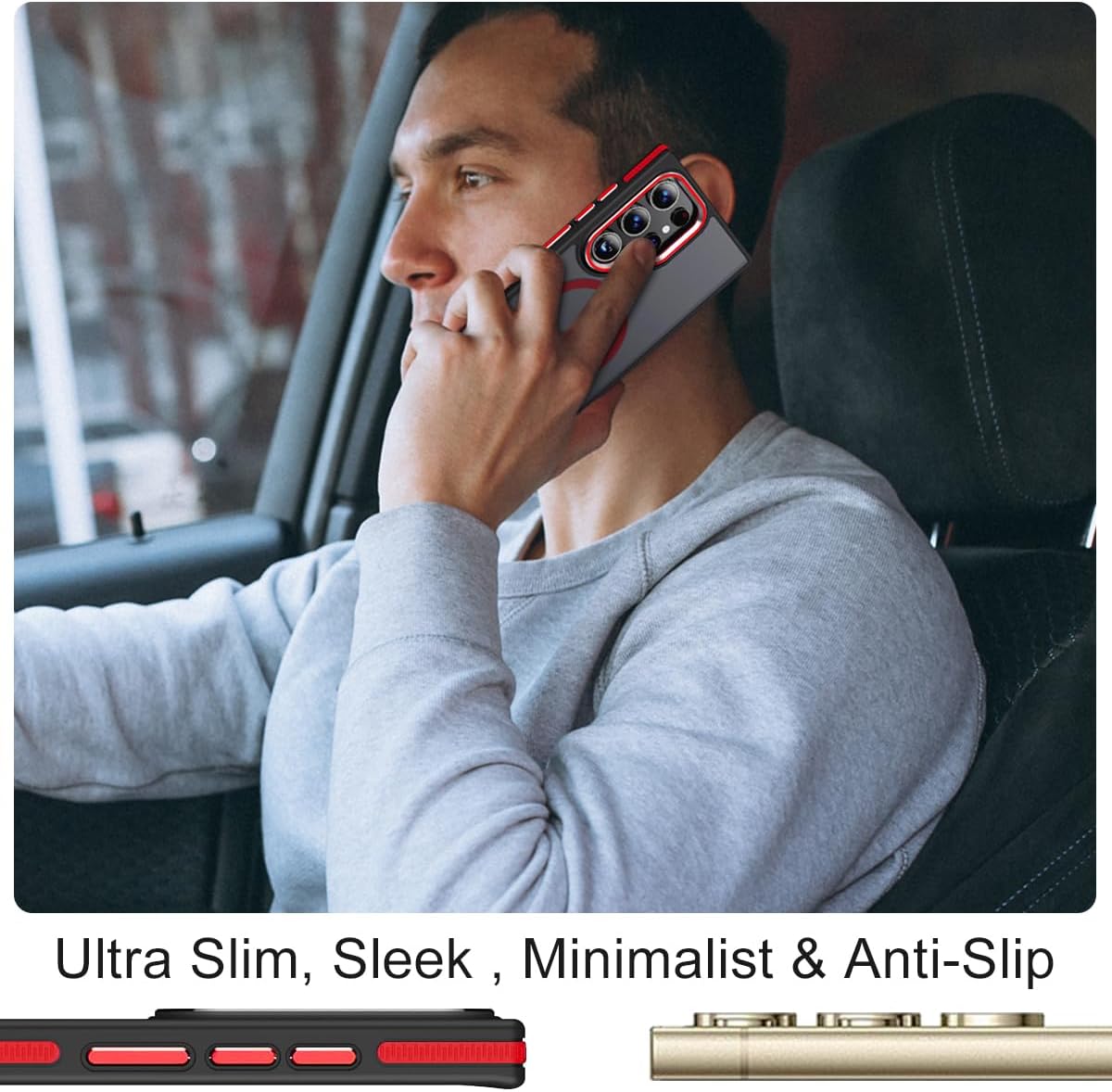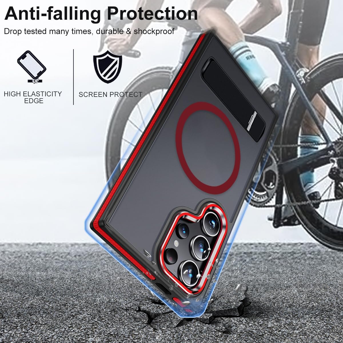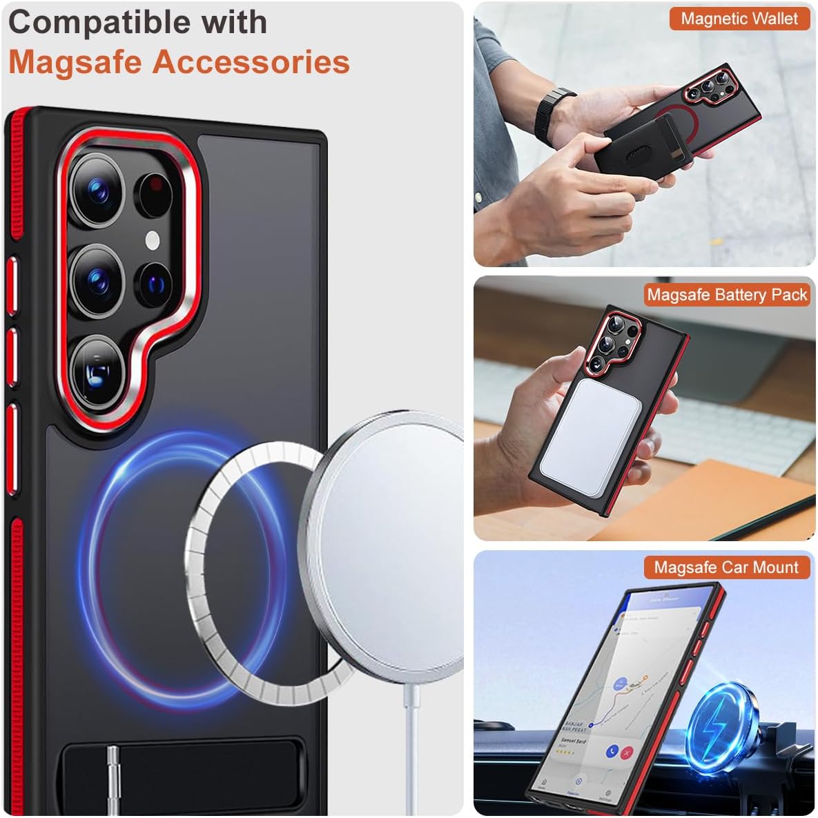 Magnetic for Samsung Galaxy S22 Ultra Case with 3 Stand Ways, [Invisible Stand] Color-Blocked with Anti-Slip Edge Anti-Drop Shockproof Slim Phone Case for Galaxy S22 Ultra 6.8” (Black/Red)