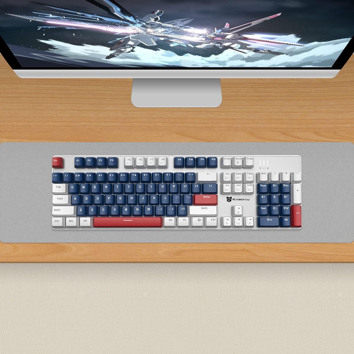 Mechanical Gaming Keyboard | Wired Gaming Keyboard | White Backlit Keyboard with Red Switches and 104 Keys | Hot Swappable Mechanical Keyboard | Mechanical Keyboard, Gaming Keyboards, Blue/White/Red