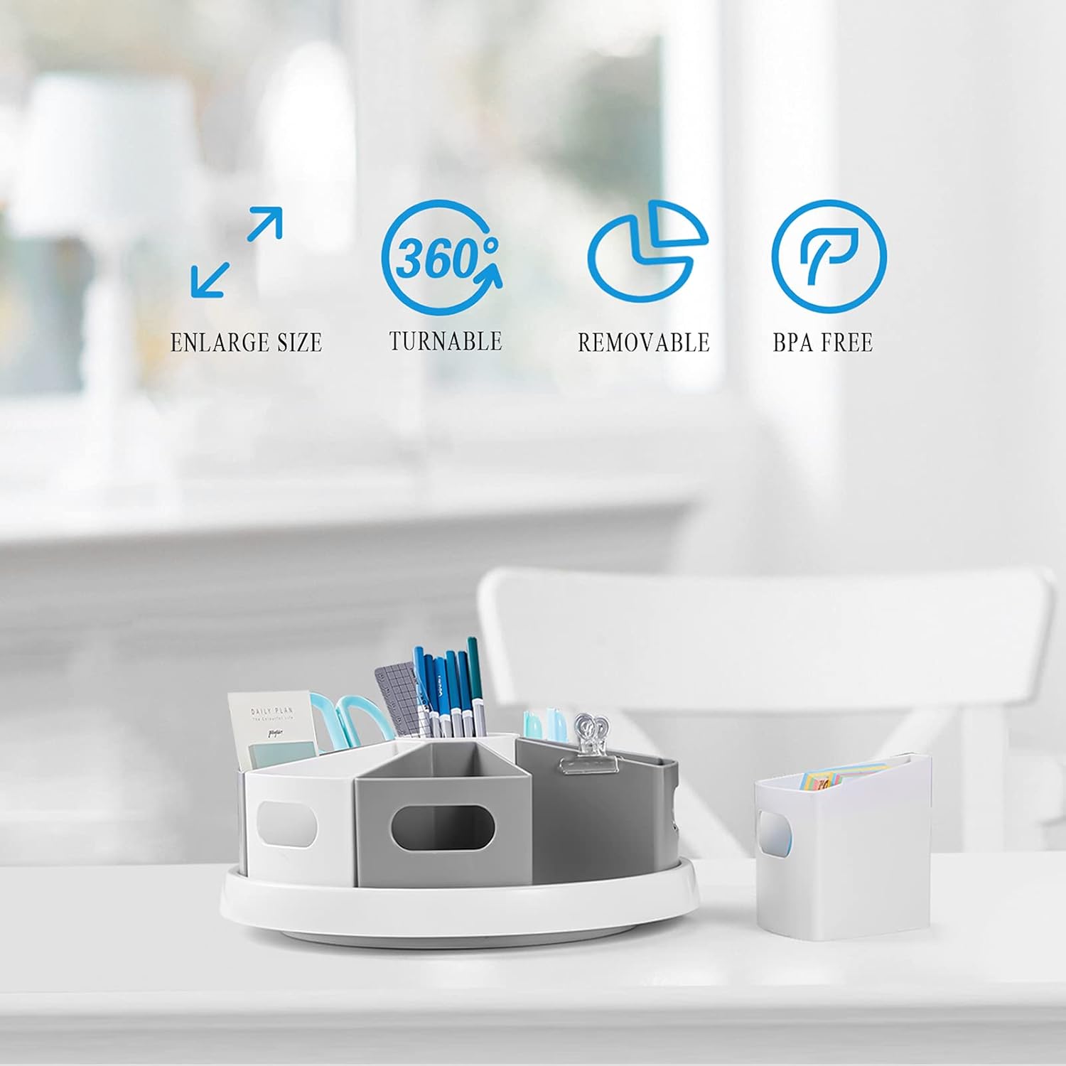 MeCids 360 Rotating Storage Organizer Desk Organizers Pen Holder– 12” Lazy Susan Style Caddy with Removable Bins, for Home Office Supplies, Art Supplies, Make-up & Kitchen Use, with Card & Gift Box