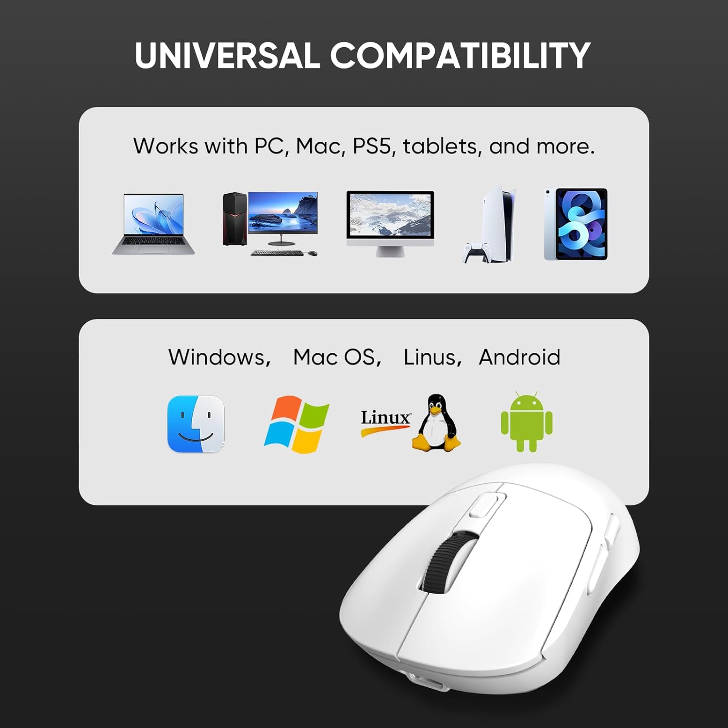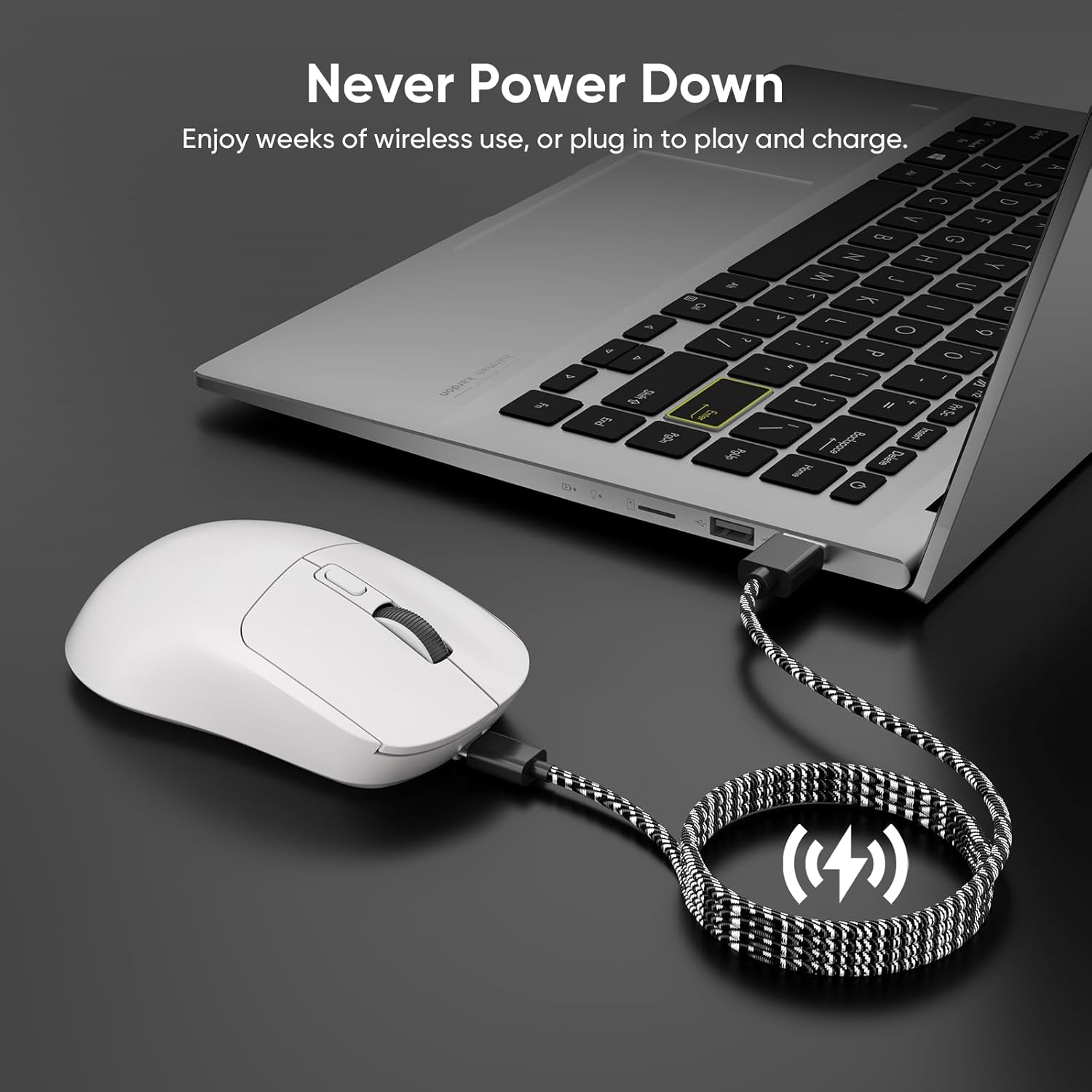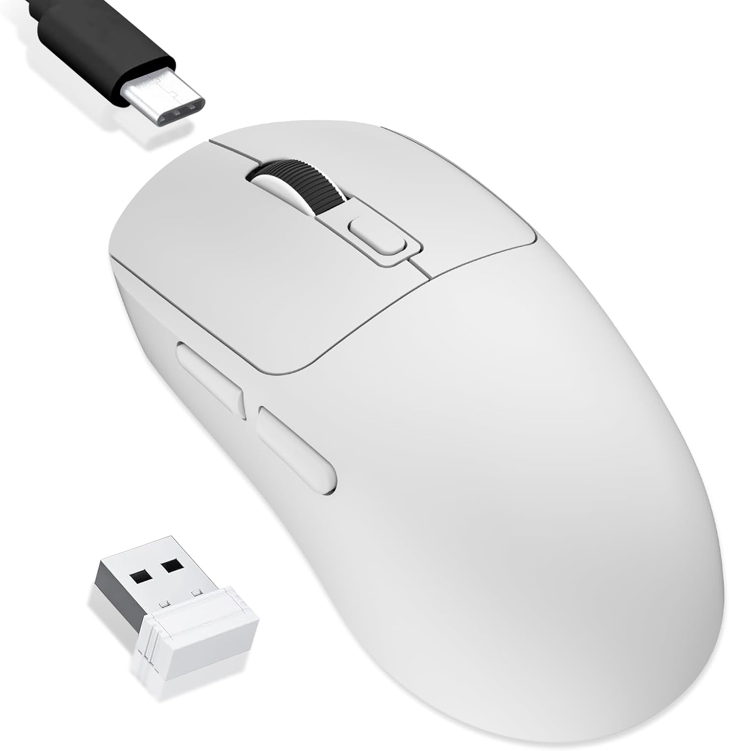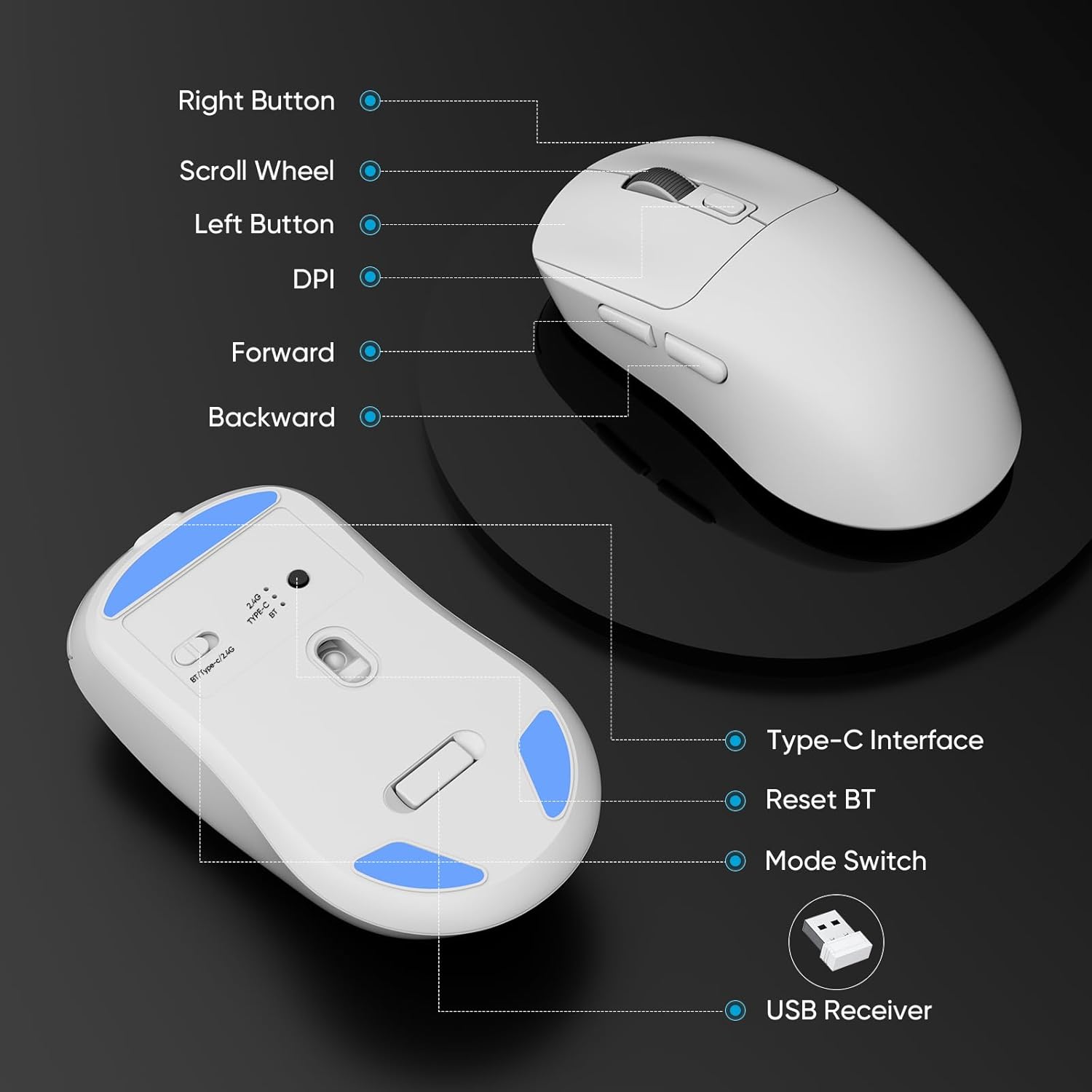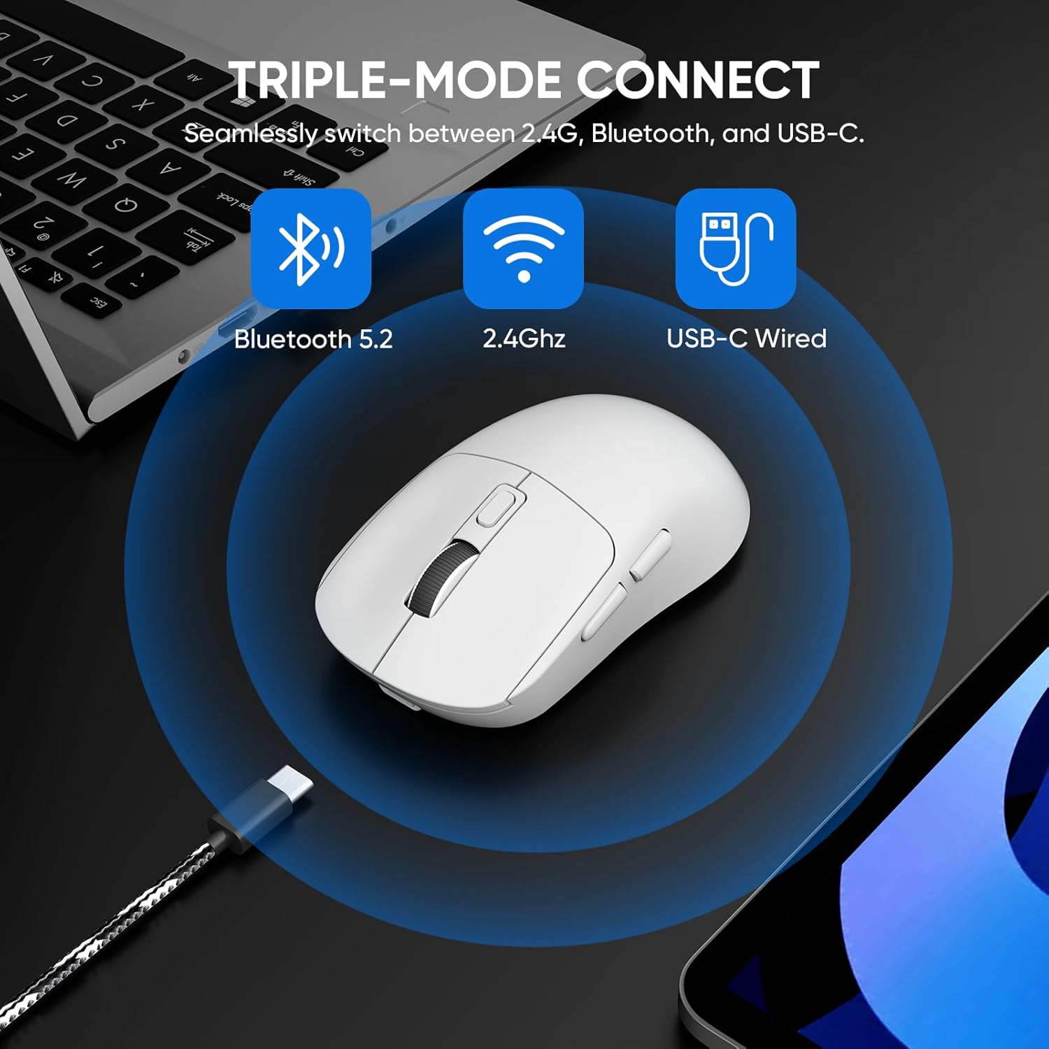 MELOGAGA Wireless Gaming Mouse, 2.4G/Bluetooth 5.4/USB-C 3-Mode Wired/Cordless Game Mice with 8 Adjustable DPI, Ergonomic Rechargeable Computer Mouse for PC, Mac, PS5, Tablet -White