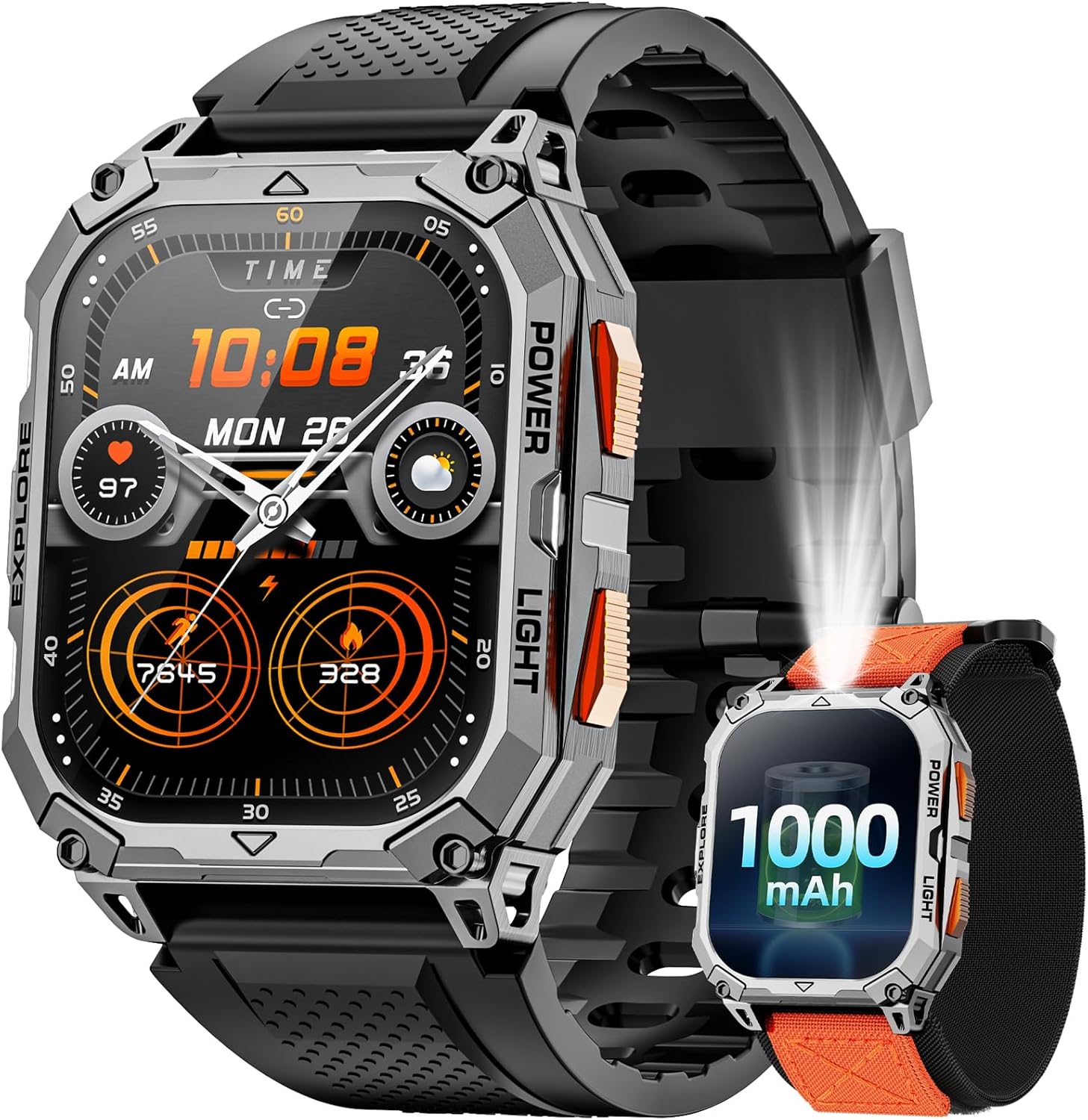 Military Smart Watches for Men, 2.01″ HD Smartwatch with 1000 mAh Battery/2 Straps/Answer/Make Call/Led Flashlight/Heart Rate/Sleep Monitor, 100+ Sport Modes Fitness Tracker for Android/iPhone