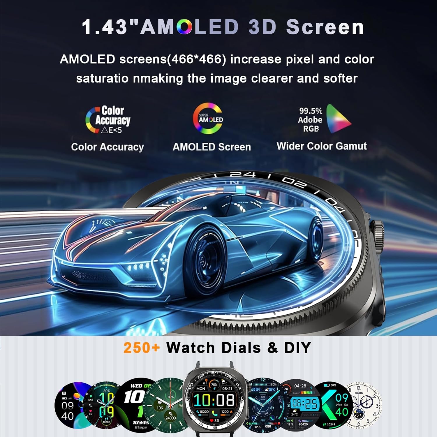 Military Smart Watches for Men(Answer/Make Call), AMOLED 1.43″ Smartwatch, Flashlight/130+ Sports/Heart Rate/Sleep Monitor/Fitness Activity Tracker, IP68 Waterproof Fitness Watch for Android iOS