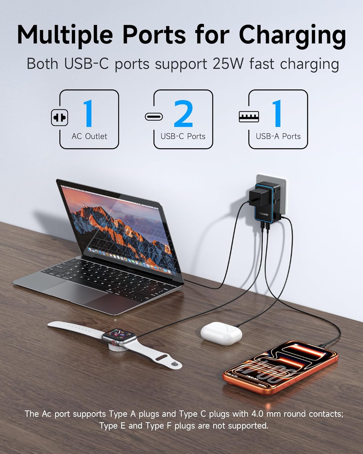 Mini Universal Travel Adapter, 【2026 Ultra-Thin】 PD 25W 4-Port Power Adapter with 1 AC, 1 USB-A, and 2 USB-C Ports, Smart Temperature Control, Compatible for EU/UK/AU/AS, Ideal for Travel Essentials