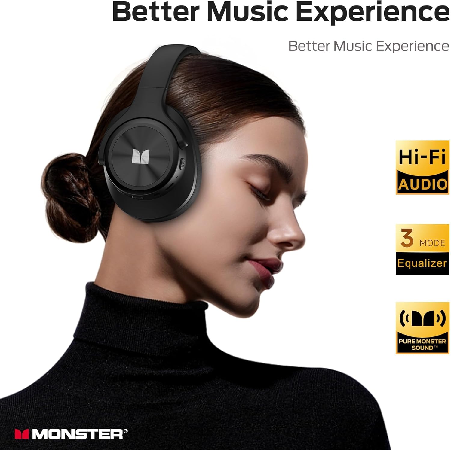 Monster Mission 200 Bluetooth Headphones, Wireless Over-Ear Bluetooth with 3 EQ Modes,60H Playtime, Low Latency HiFi Stereo Foldable Lightweight Headset, Deep Bass for Home Office Cellphone PC Ect