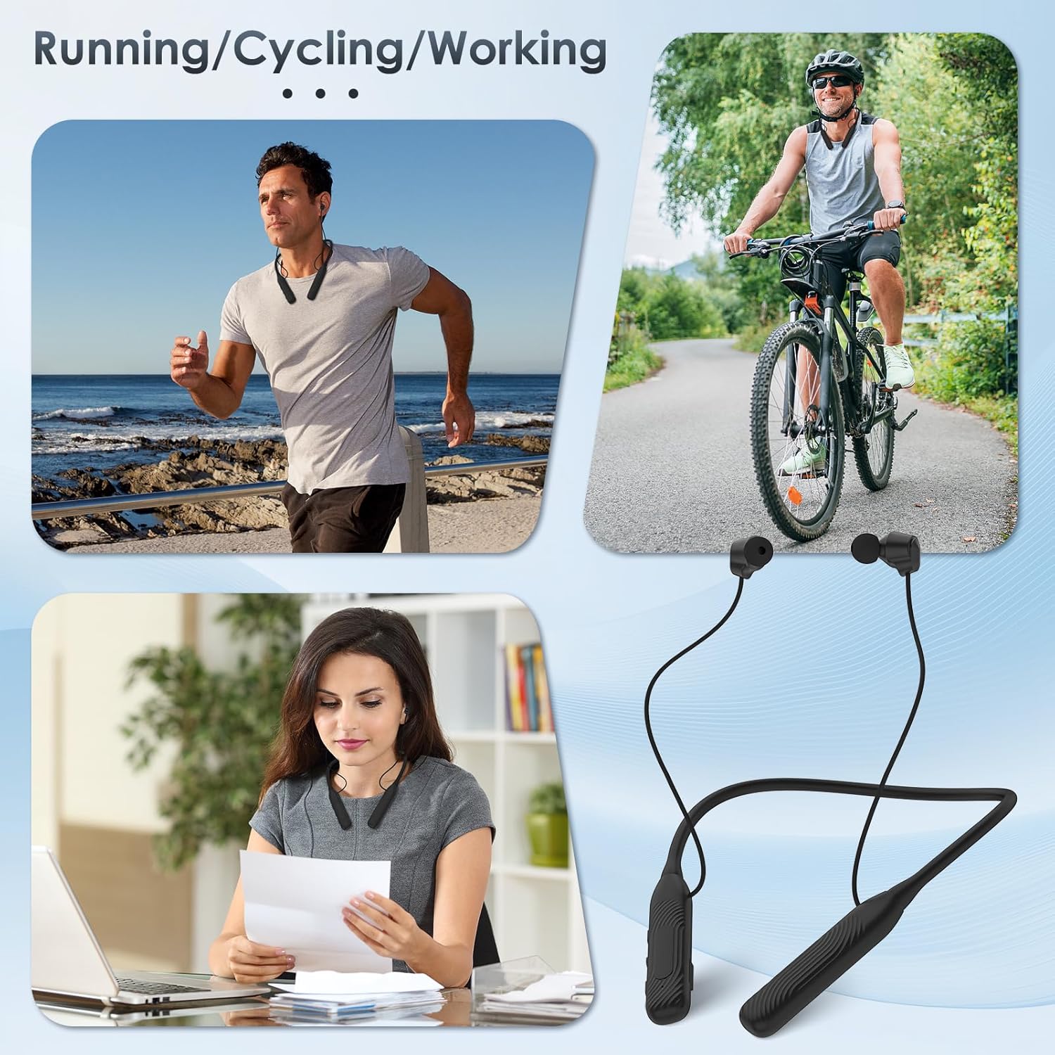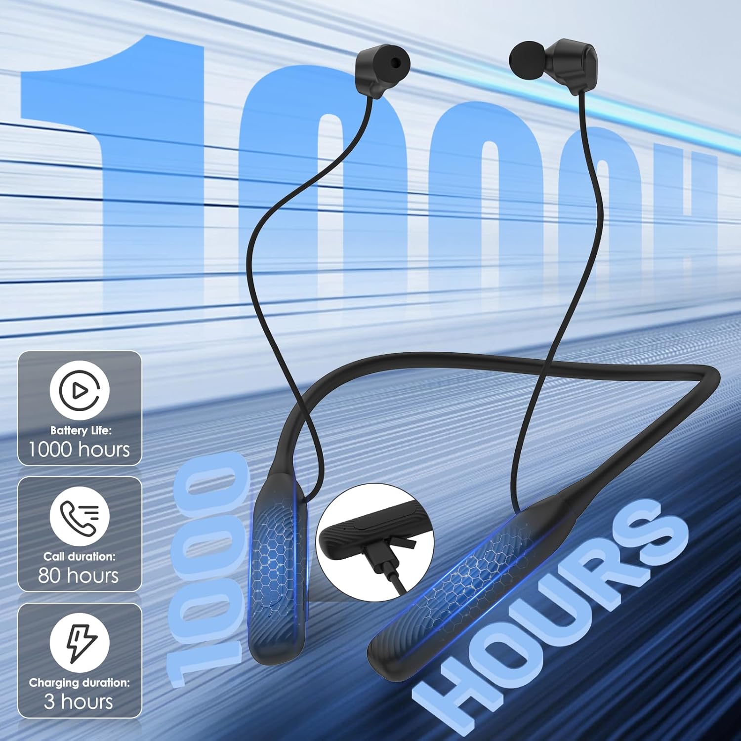 Neckband Bluetooth Headphones(1-Year Quality Support) , 1000H Extra Long Battery Life with Magnetic Earphones,Wireless Earbuds with Mic,Waterproof In-Ear Headset for Sports/Workout/Office (Black)