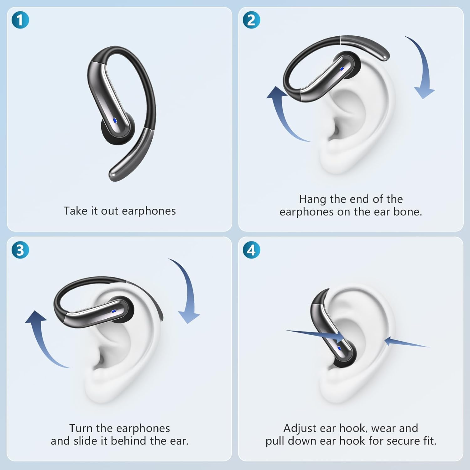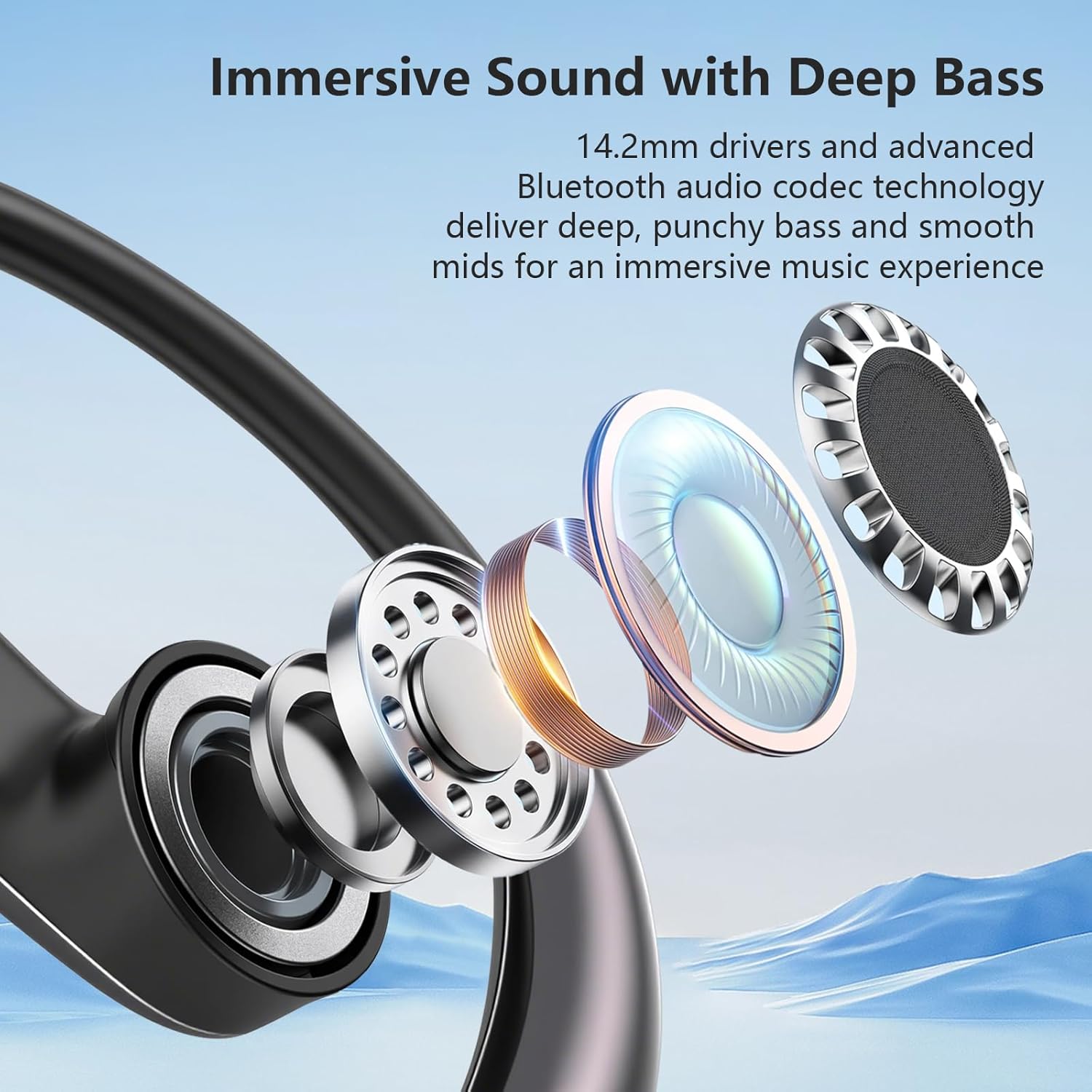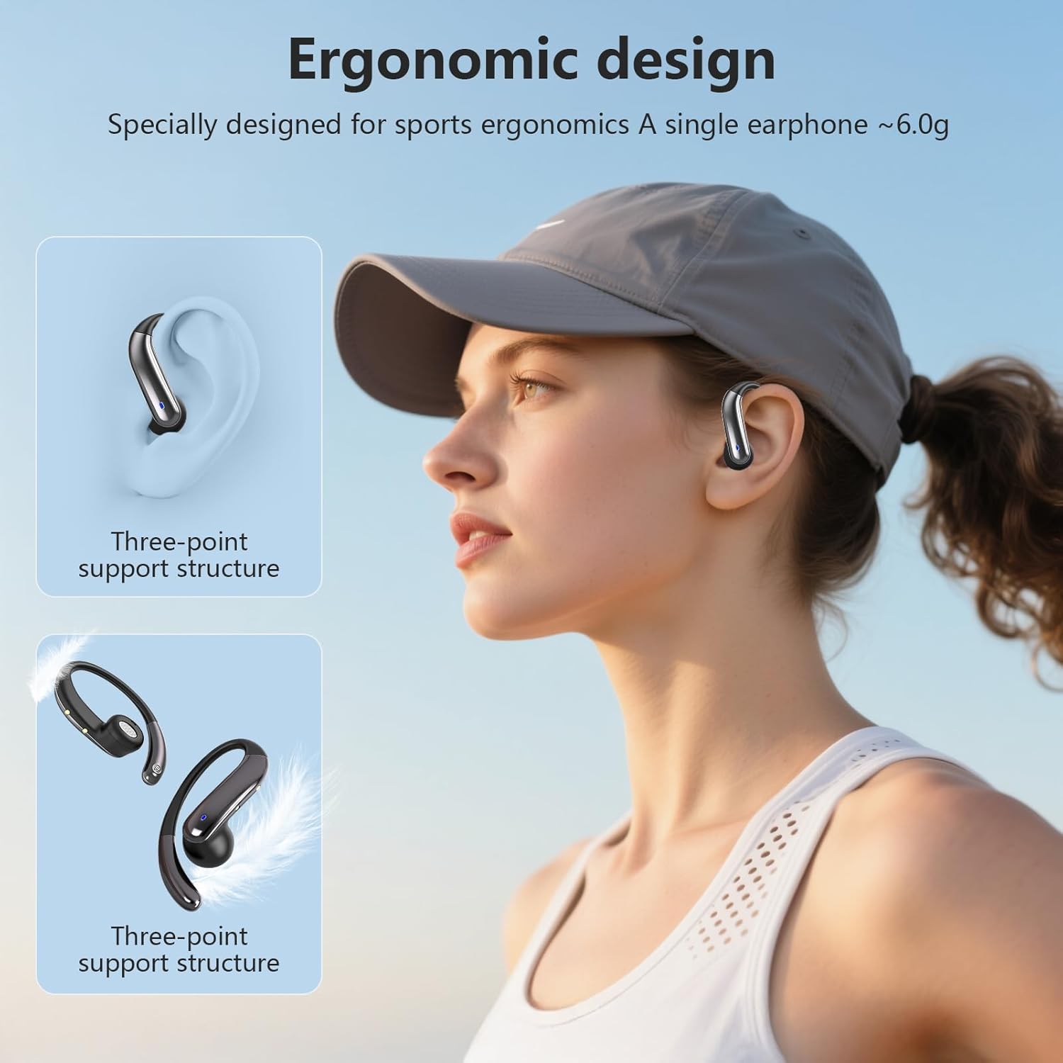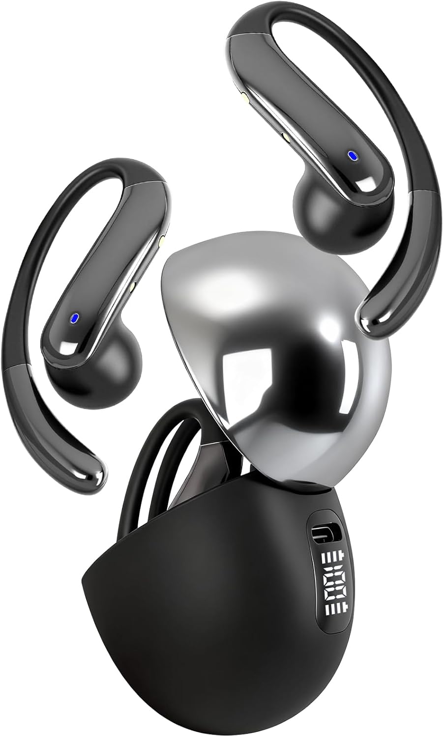 Open Ear Bone Conduction Headphones,Over Ear Earbuds with Ergonomic Earhook,Bluetooth Headphones 5.4 with Smart Digital Display,50H Playtime,IPX7 Waterproof,Touch Control Operate Fit Cycling Running
