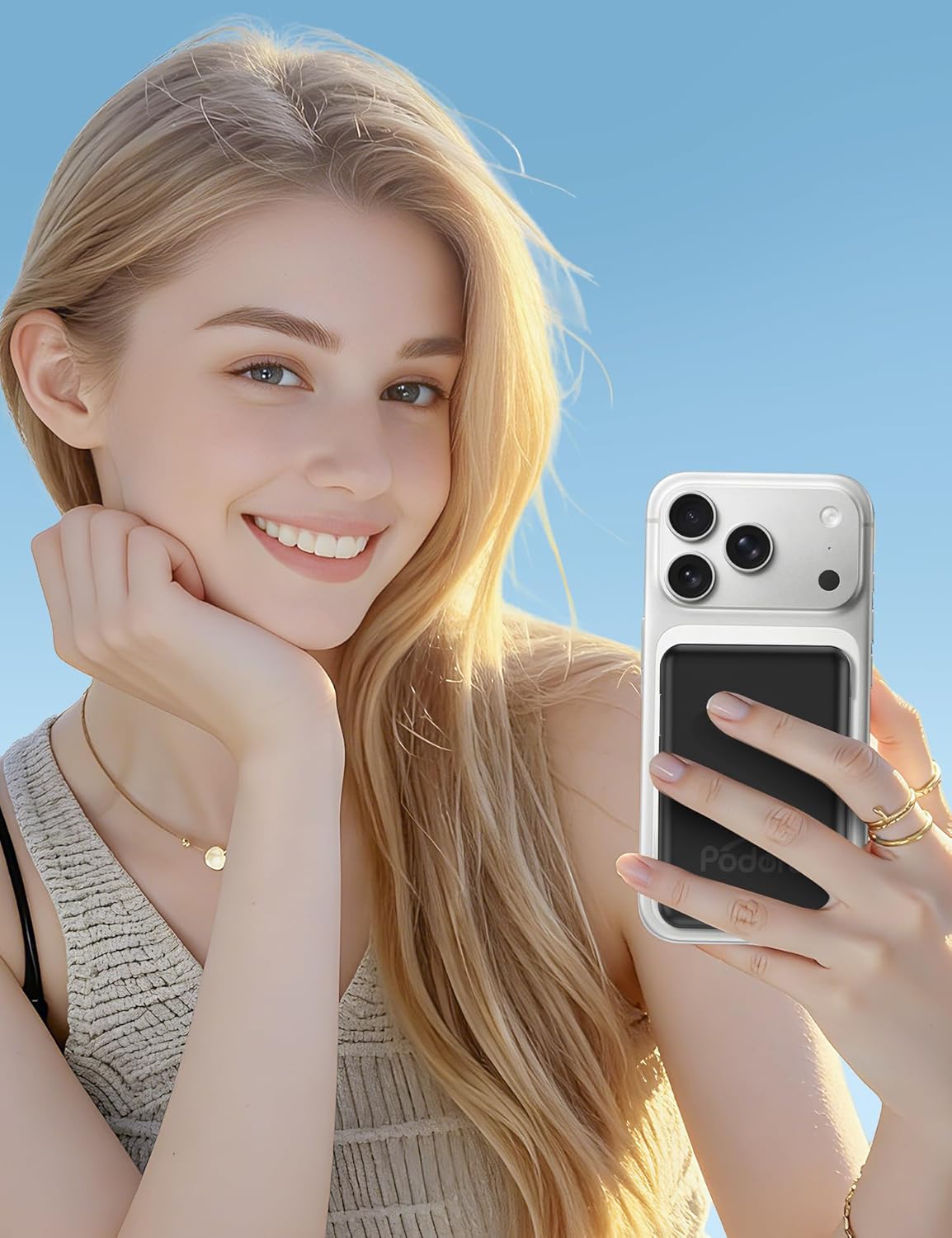 podoru for Magsafe Battery Pack, 10000mAh Magnetic Power Bank Built-in Double USB C Cables 22.5W PD Fast Charging LED Display Wireless Portable Charger for iPhone 17/16/15/14/13/12 Series-Black