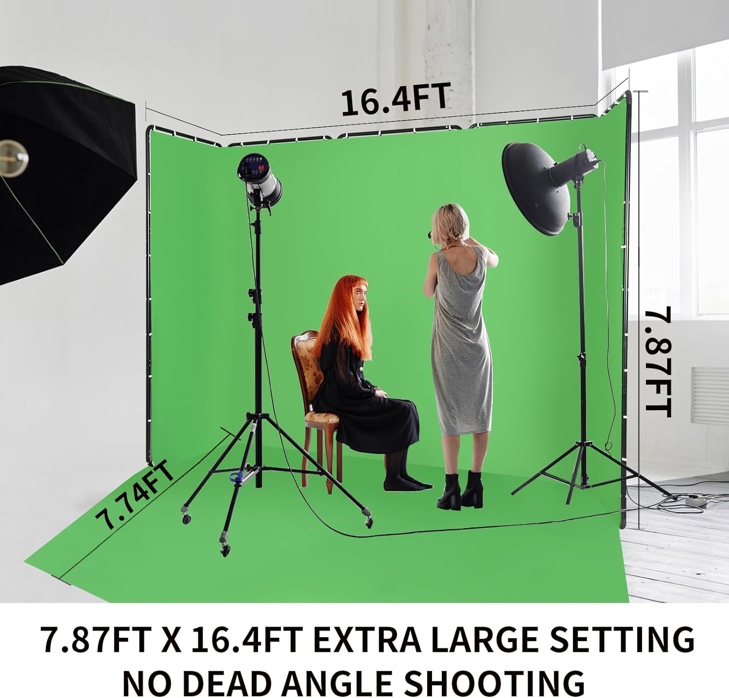 Professional 7.87ftx16.4ft Portable Large Chromakey Green Screen Wide Backdrop Kit with Stand Photography Background Support System for Photo Studio Video Shoot, Live Streaming, Party, Stage