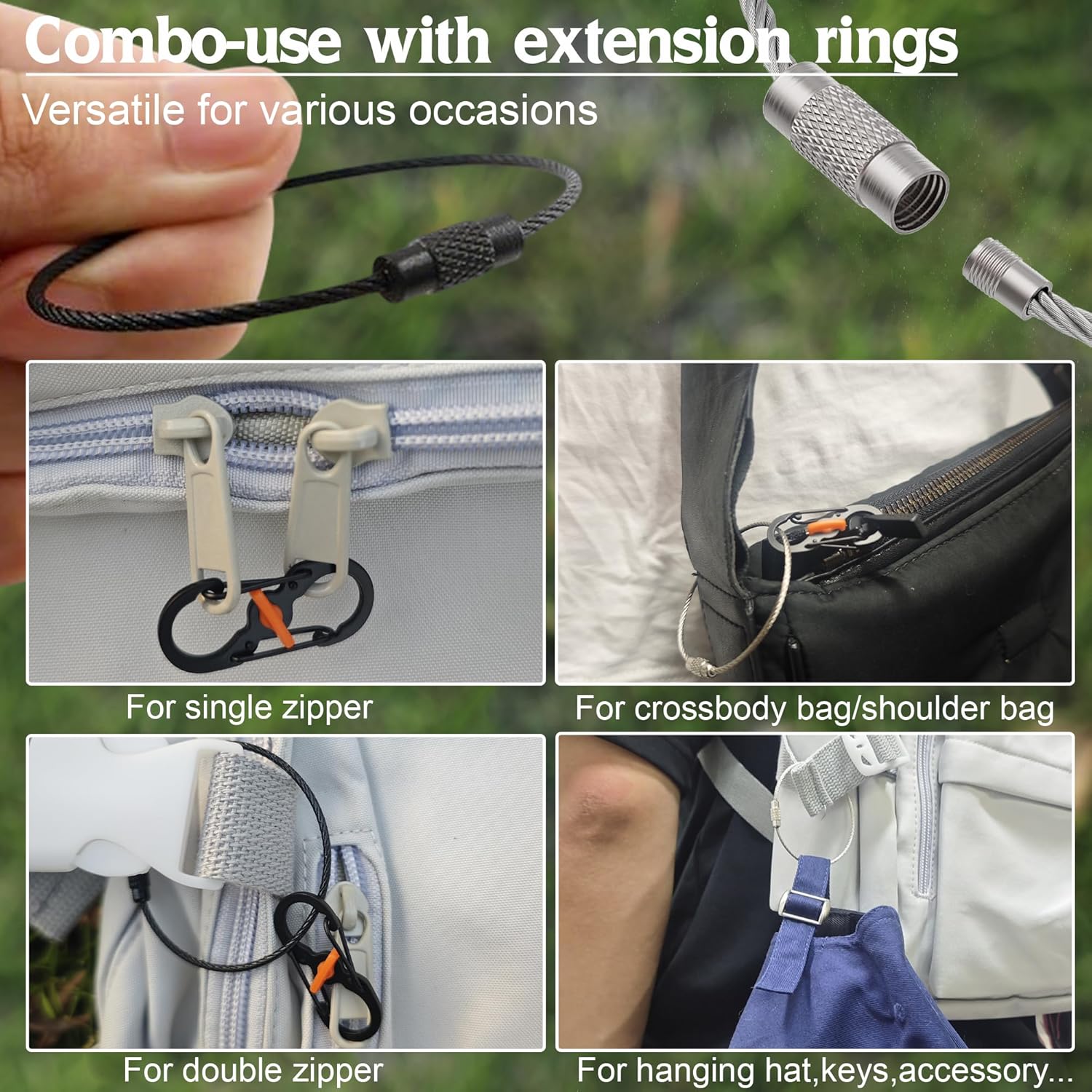 Qivievsa 8Pcs Zipper Clips Anti Theft Travel Set,Lockable Zipper Clip with Extension Ring,for Backpacks, Crossbody Bag, Double/Single Zippers, Anti Pickpocket Zippers Lock-Black