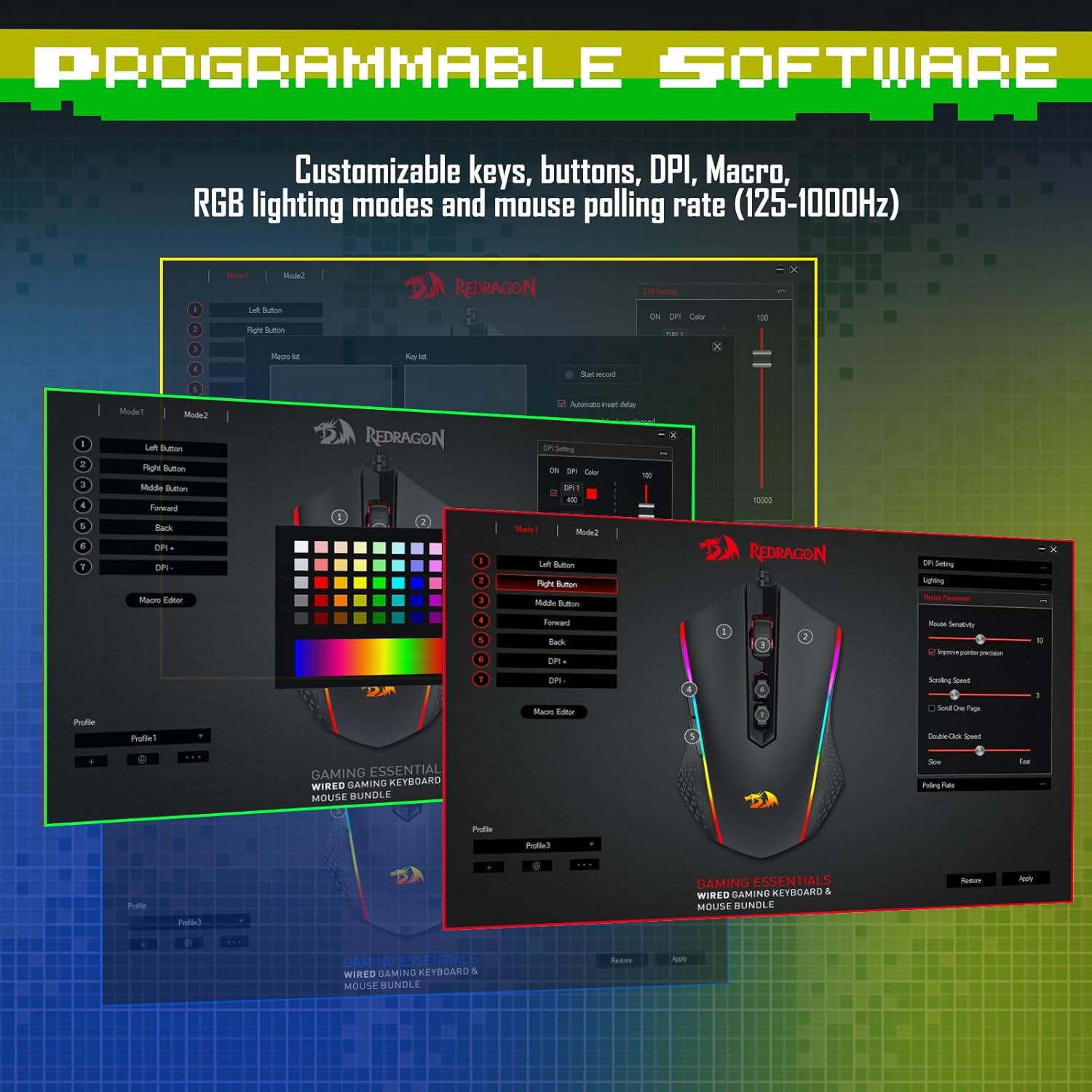 Redragon Updated S107 Gaming Keyboard and Mouse, RGB Gaming Keyboard and 10000 DPI Mouse Combo with 25-Key Anti-Ghosting, 1K Hz Programmable Mice with Software, Plug & Play to PC, Laptop [Upgrade]