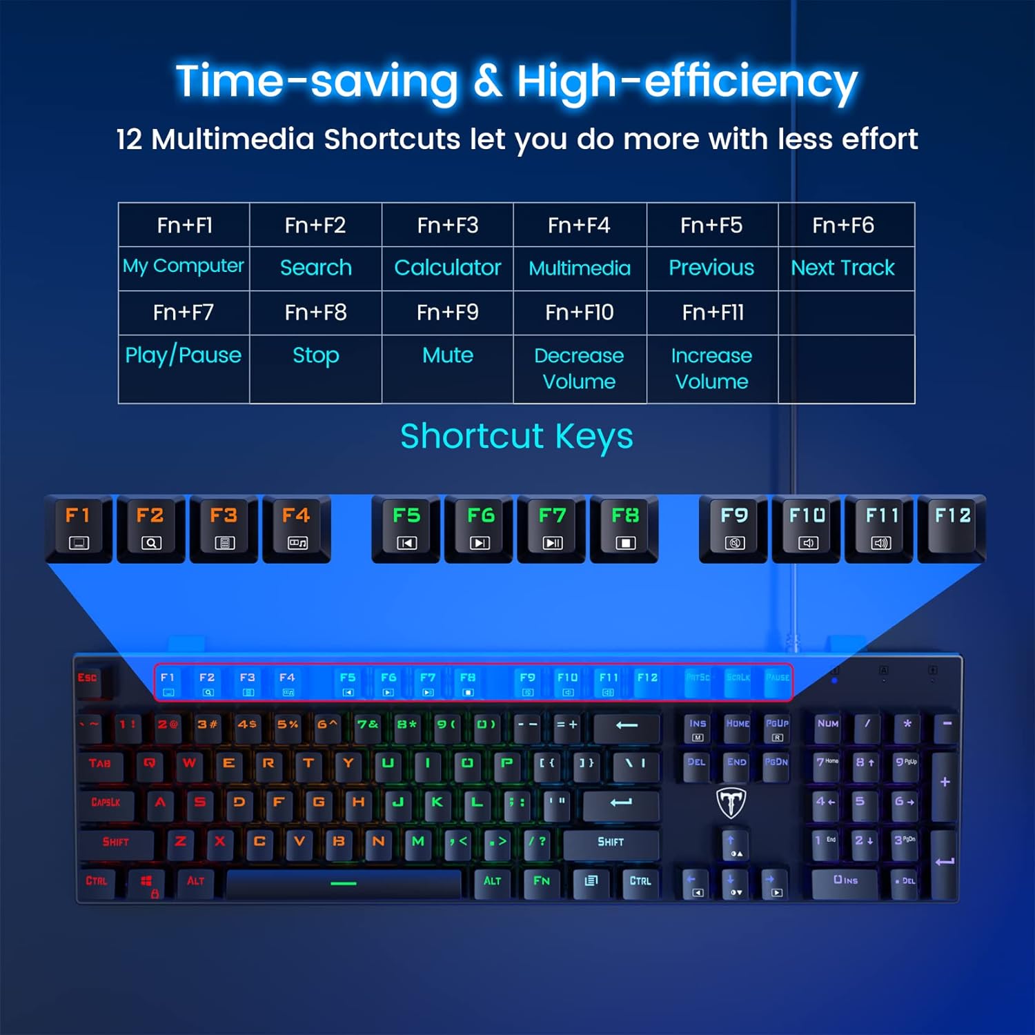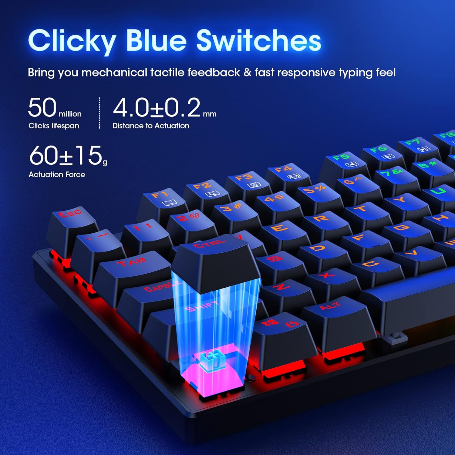 RisoPhy Mechanical Gaming Keyboard, RGB 104 Keys Ultra-Slim LED Backlit USB Wired Keyboard with Blue Switch, Durable Abs Keycaps/Anti-Ghosting/Spill-Resistant Computer Keyboard for PC Mac Xbox Gamer