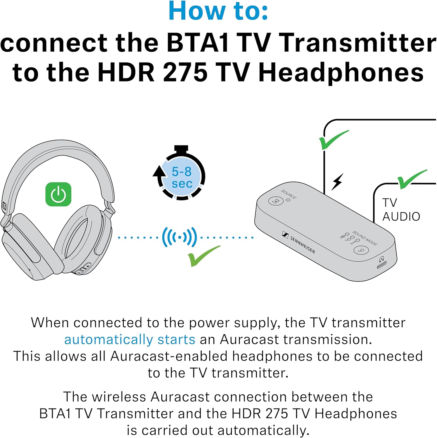 Sennheiser RS 255 TV Headphones – Bluetooth Headphones and Transmitter Bundle – Low Latency Wireless Headphones with Virtual Surround Sound, Speech Clarity and Auracast Technology – 50 h Battery