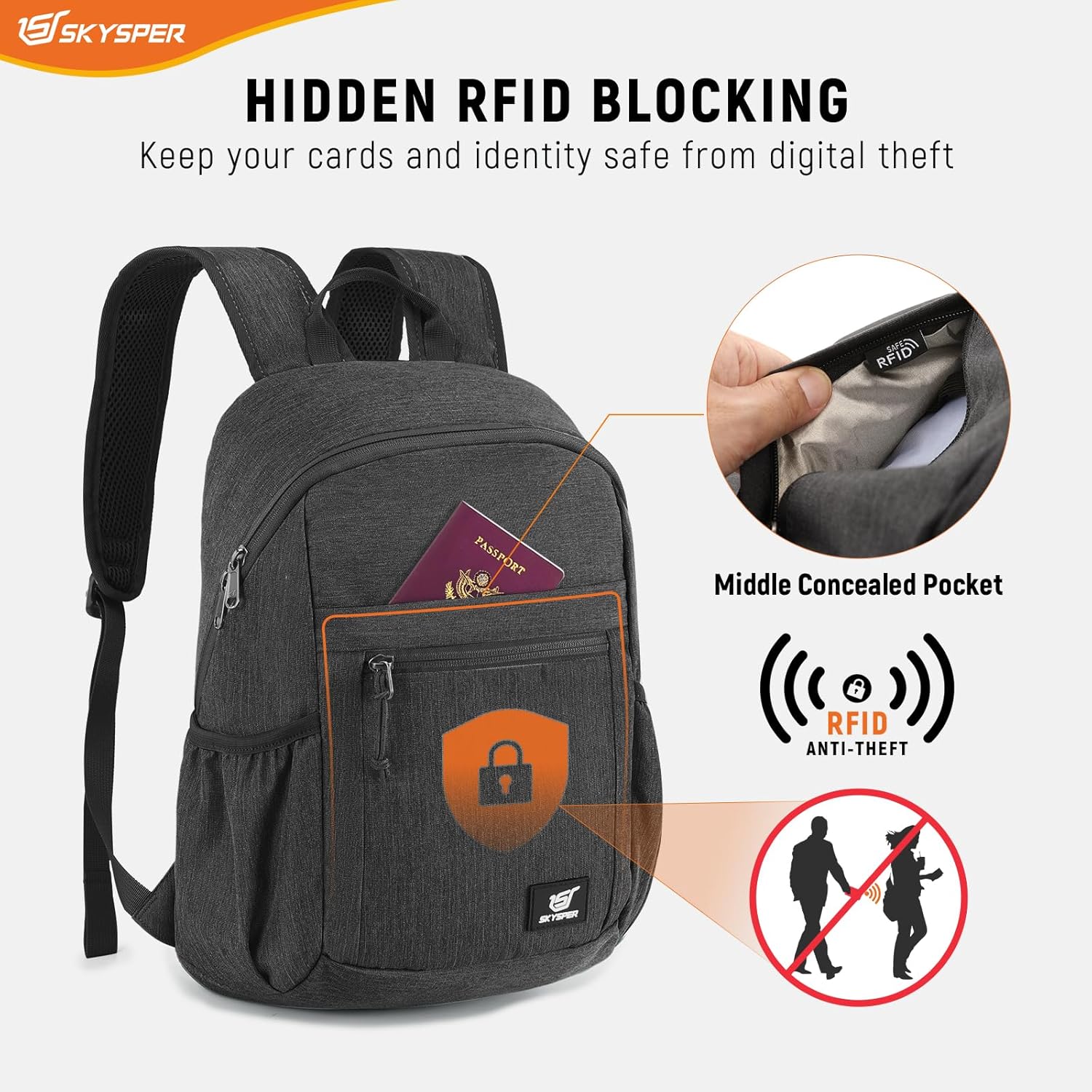 SKYSPER Anti Theft Hiking Backpack, 18L RFID Packable Travel Daypack, Lightweight Foldable Back Pack for Walking Daytrip