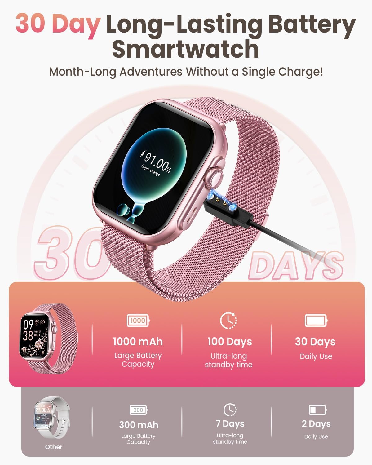 Smart Watch for Women Men Fitness: 1.85″ Smart Watch with 30 Days+ Battery Life Make/Recive Call Heart Rate SpO2 Sleep Monitor 120+ Sport IP68 Waterproof Fitness Tracker Watch for iPhone Android