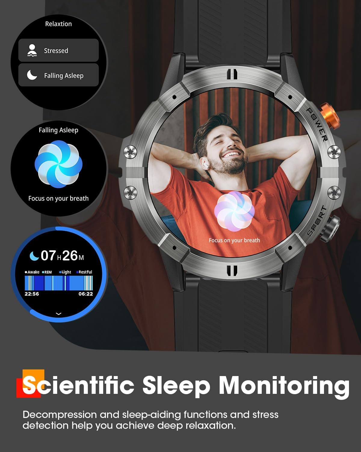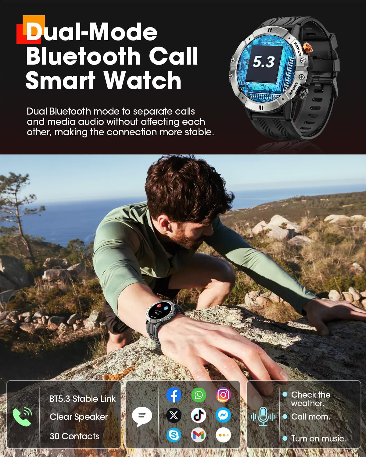 Smart Watches for Men, Bluetooth Call Military Smart Watch, Waterproof Fitness Tracker with Heart Rate/Blood Oxygen/Sleep Monitor/124 Sports Modes, Tactical Watch for Android Phones & iPhone (Silver)