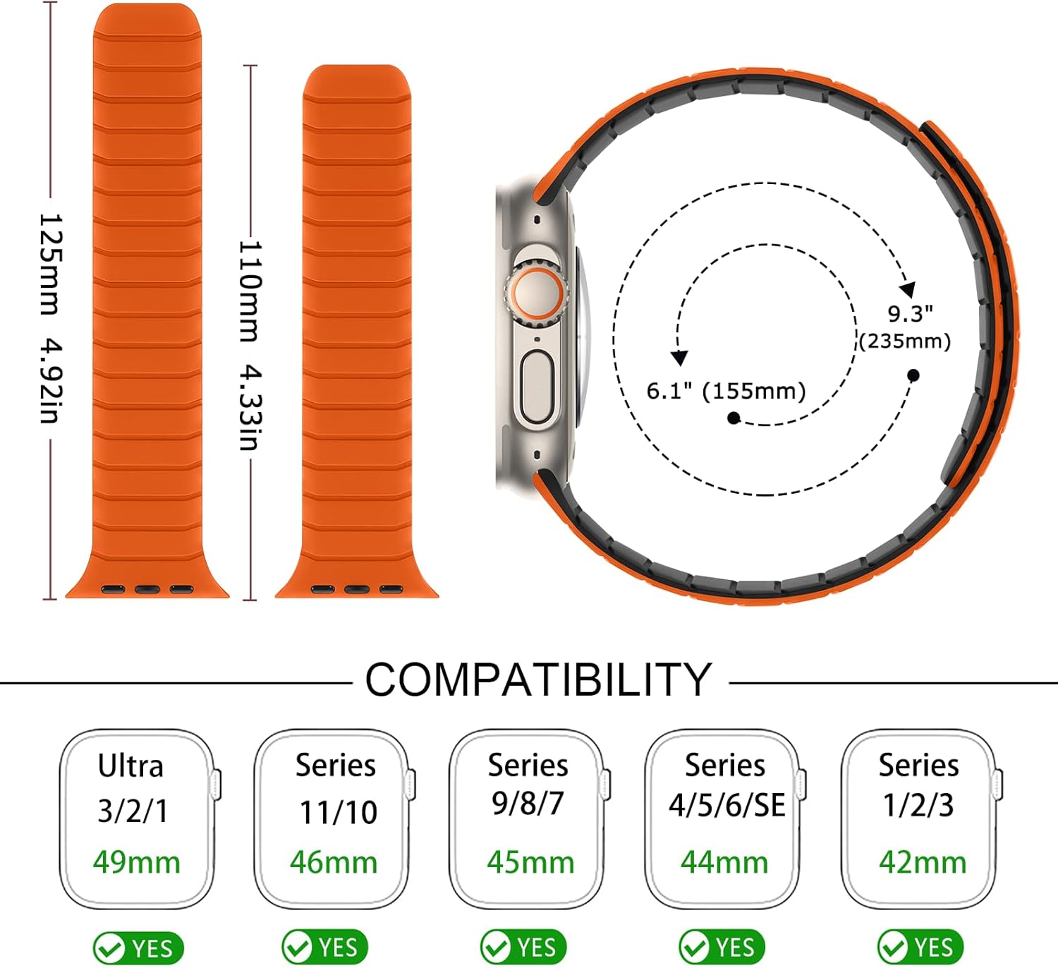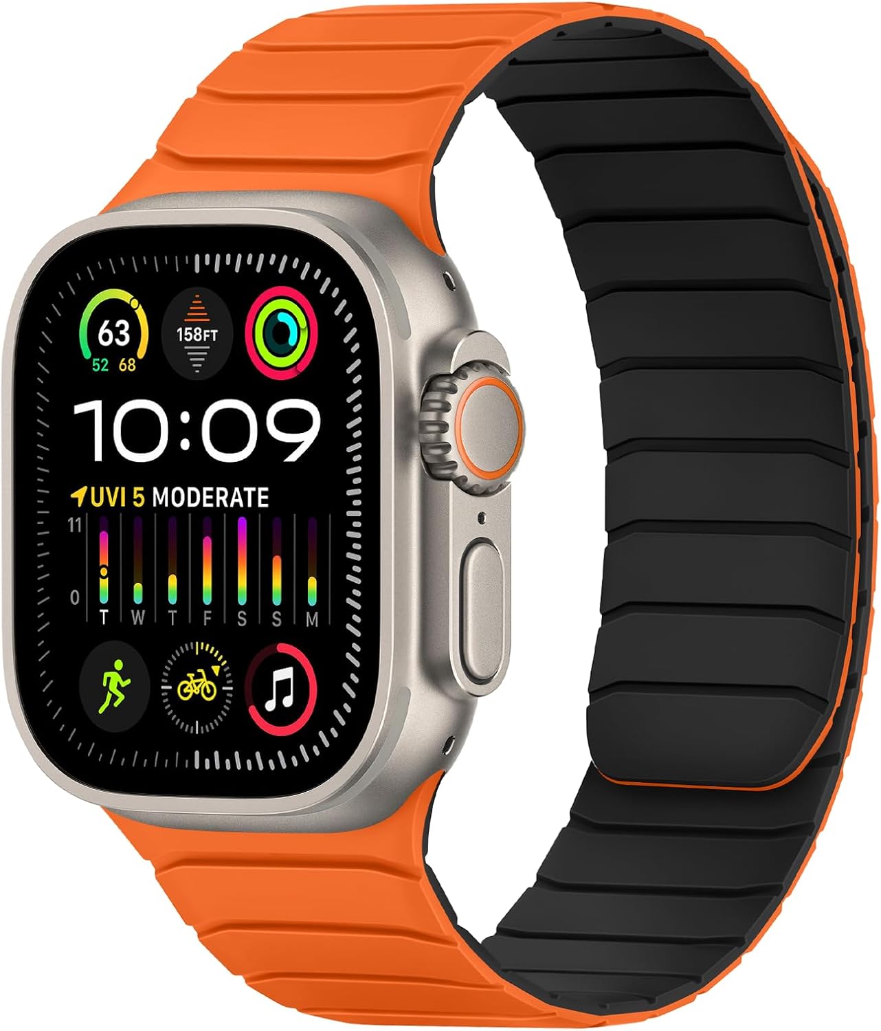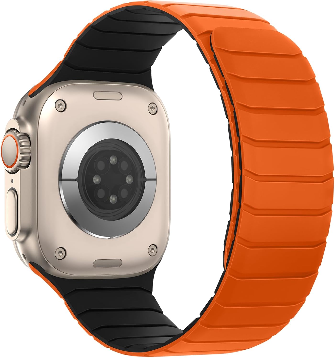 Tasikar Magnetic Bands Compatible with Apple Watch 49mm 46mm 45mm 44mm 42mm Soft Silicone Replacement Loop Wristband for iWatch Ultra 3 2 1 SE Series 11 10 9 8 7 6 5 4 3, Orange-Black