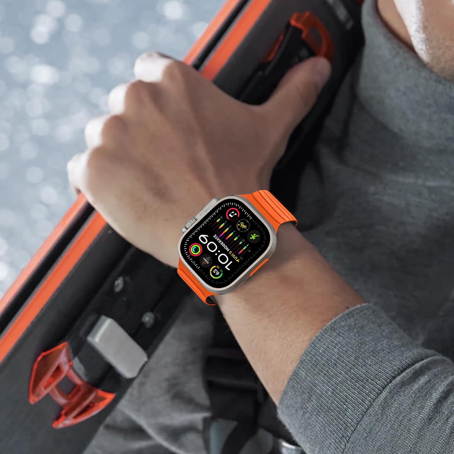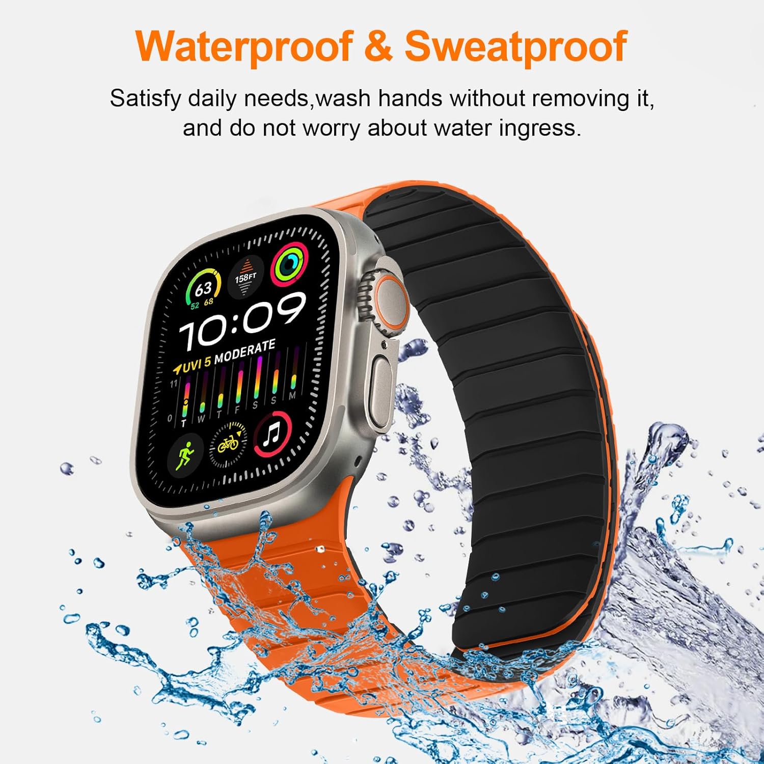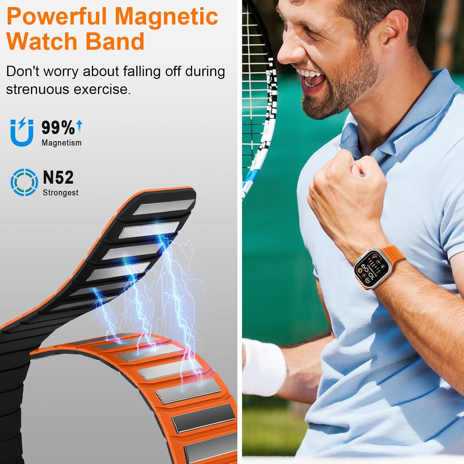 Tasikar Magnetic Bands Compatible with Apple Watch 49mm 46mm 45mm 44mm 42mm Soft Silicone Replacement Loop Wristband for iWatch Ultra 3 2 1 SE Series 11 10 9 8 7 6 5 4 3, Orange-Black