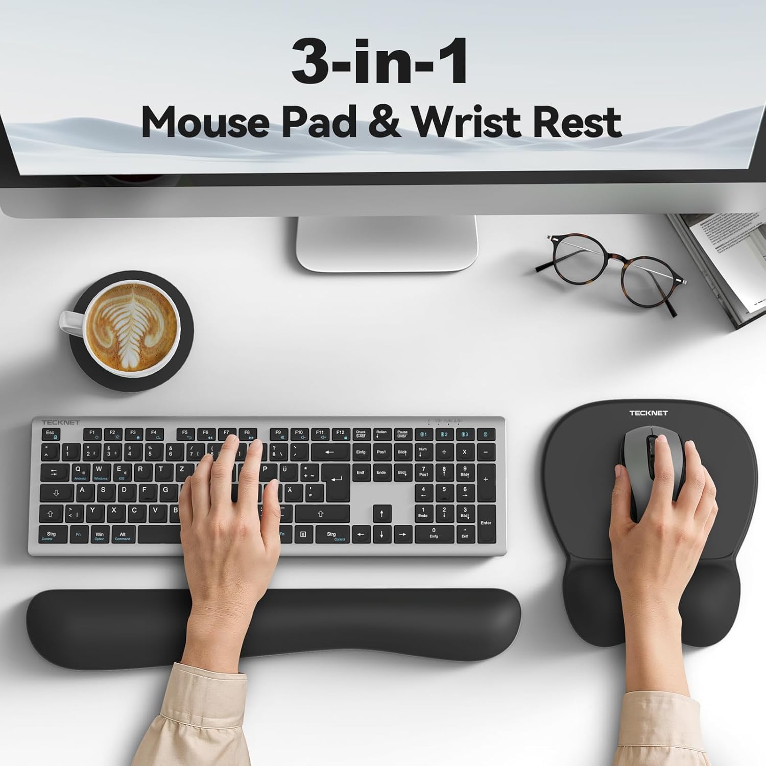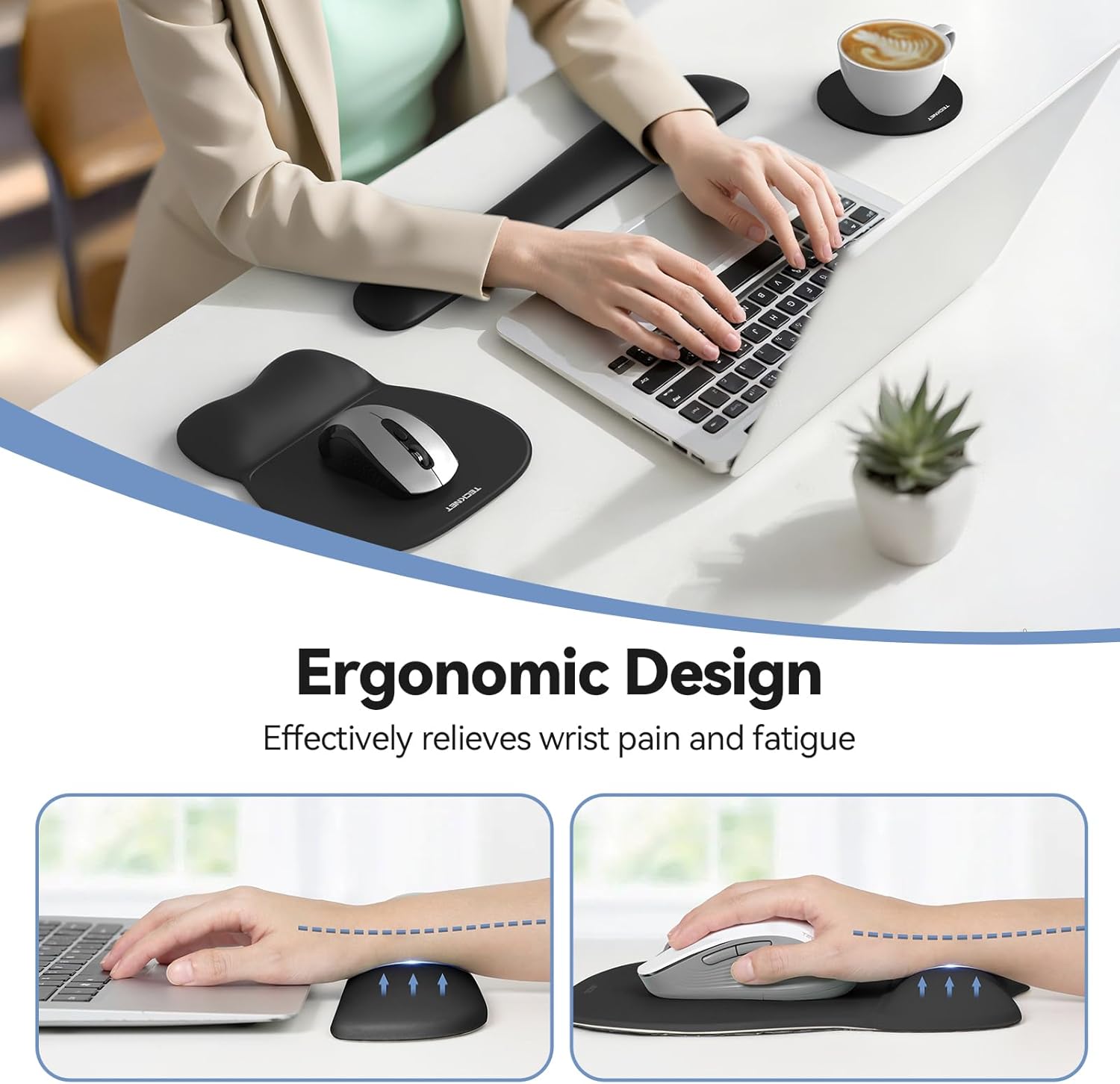 TECKNET Gel Mouse Pad with Wrist Rest, 3 in 1 Keyboard Wrist Rest for Pain Relief, Non-Slip PU Base & Easy Typing, Ergonomic Mousepad Set for Office & Home(Black)
