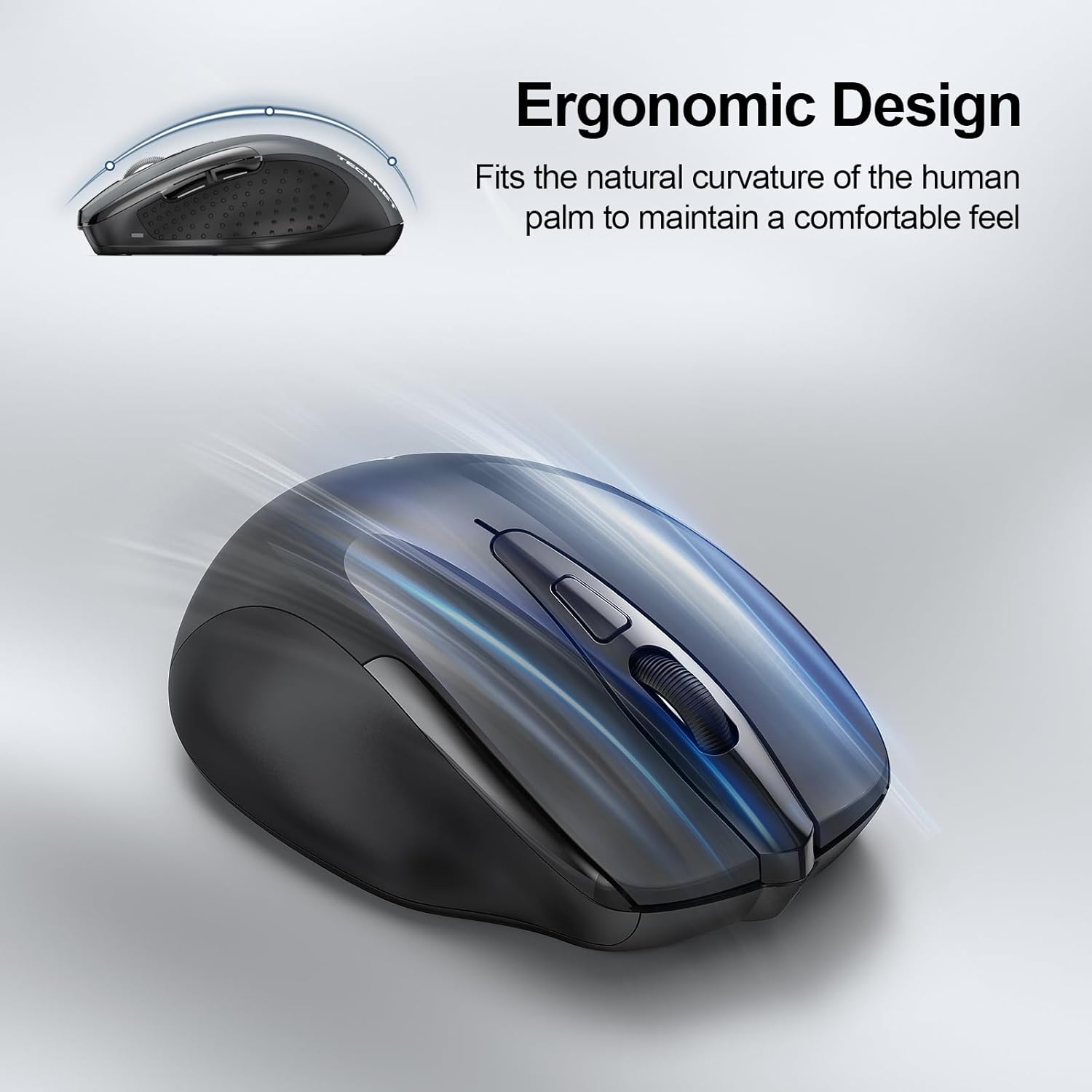 TECKNET Wireless Mouse (2.4G & BT5.0/3.0) Silent 4800 DPI Computer USB A & Bluetooth Mouse 6 Buttons, Wide Compatibility – Grey