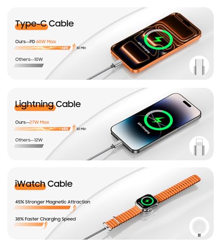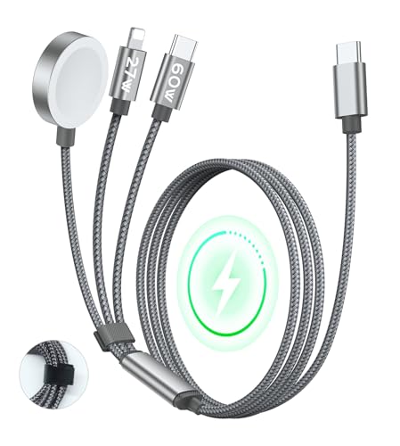 Temdan for Apple Watch Charger,3 in 2 USB C Cable for iPhone 16 Charger/Type C/Lightning Nylon Braided Multi Charging Cable Travel Essentials Compatible with iWatch Ultra/SE/10-1&iPhone 16-12