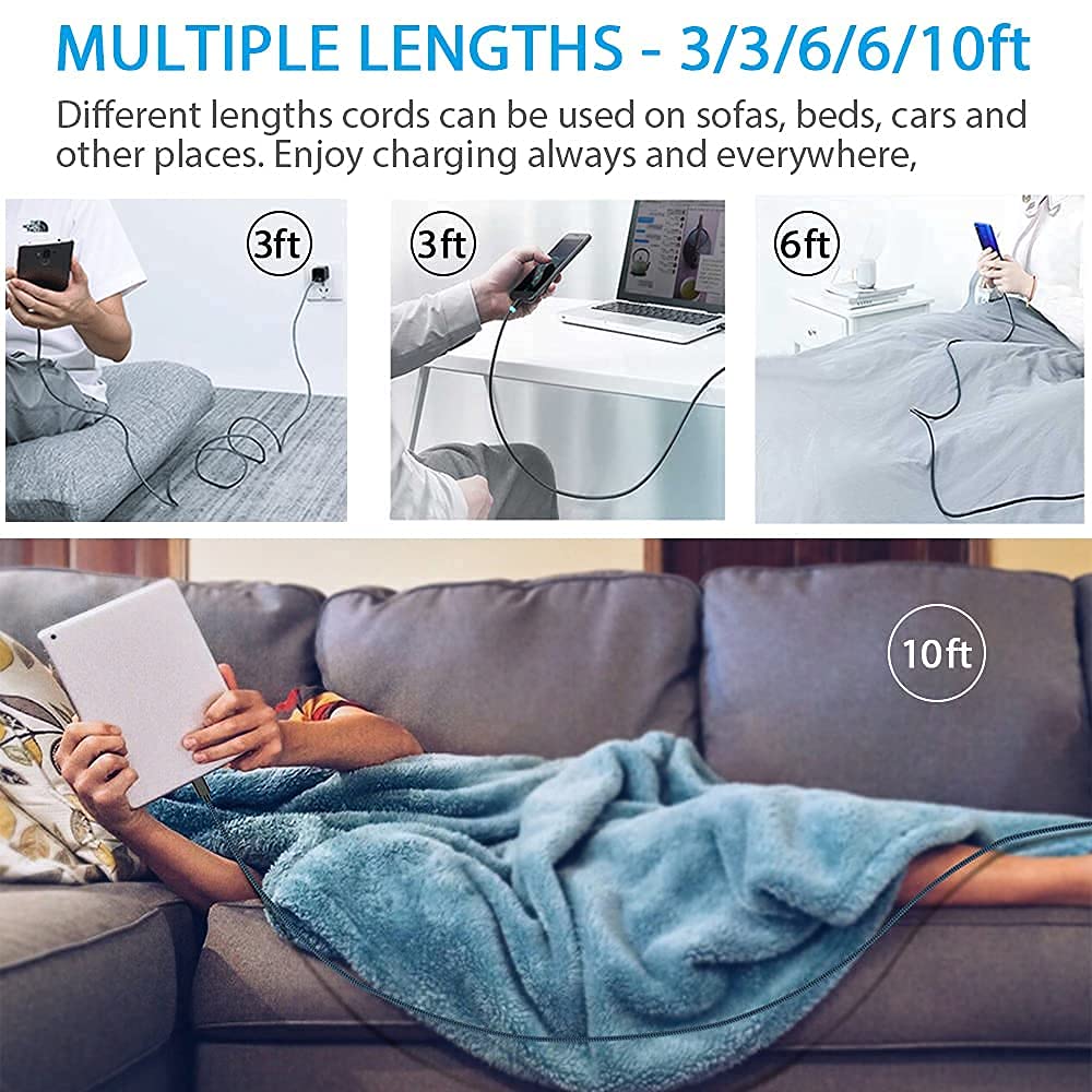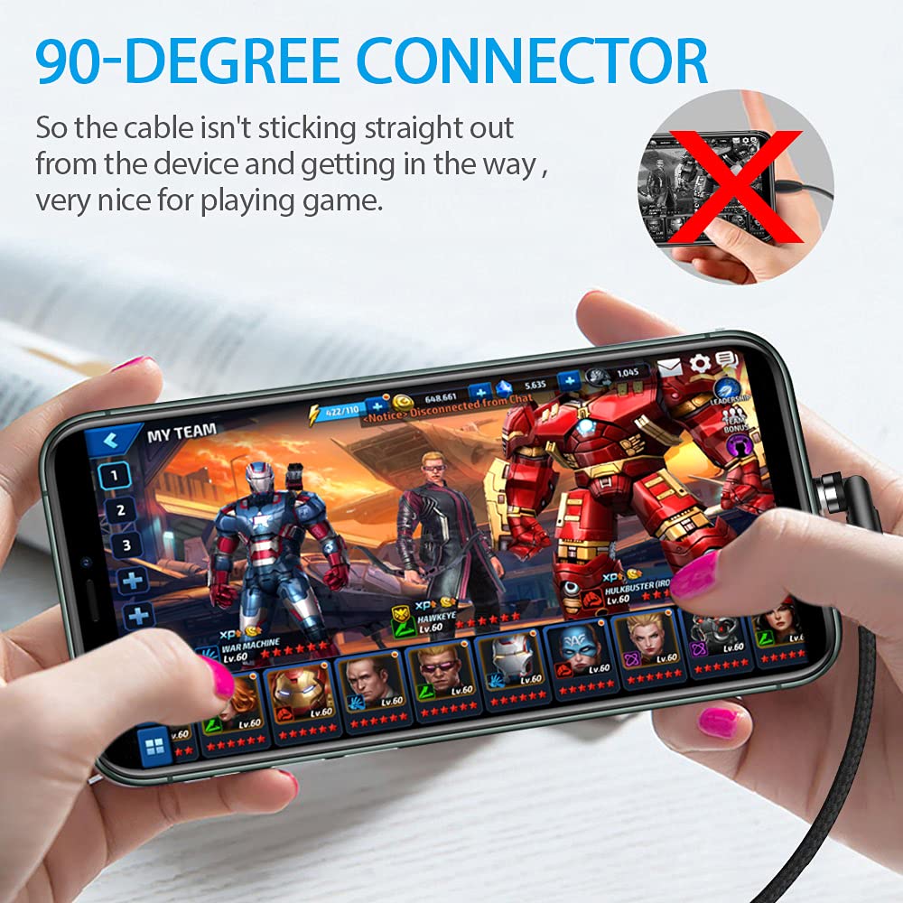 Terasako Magnetic Charging Cable 5-Pack (3/3/6/6/10FT) – 540° Rotating Magnetic Phone Charger Cable with LED Light – 90° Angle Connector, Nylon-Braided Cords (Black)