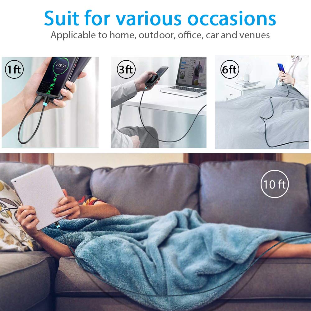 Terasako Magnetic Charging Cable 6-Pack [1ft/3ft/3ft/6ft/6ft/10ft], 3 in 1 Nylon Braided Magnetic Phone Charger, Compatible with Micro USB, Type C, iProduct and Most Devices