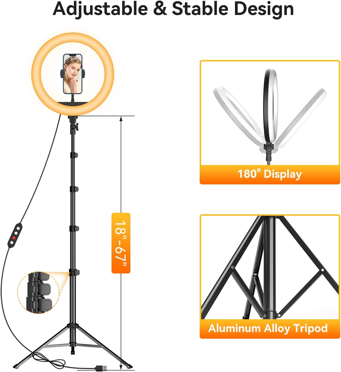 TODI 12″ Ring Light with 63″ extendable Tripod Stand, Selfie RingLight with Phone Holder and Selfie Remote, 2-in-1 Dimmable LED Ring Light for Makeup, Live Stream, Photography