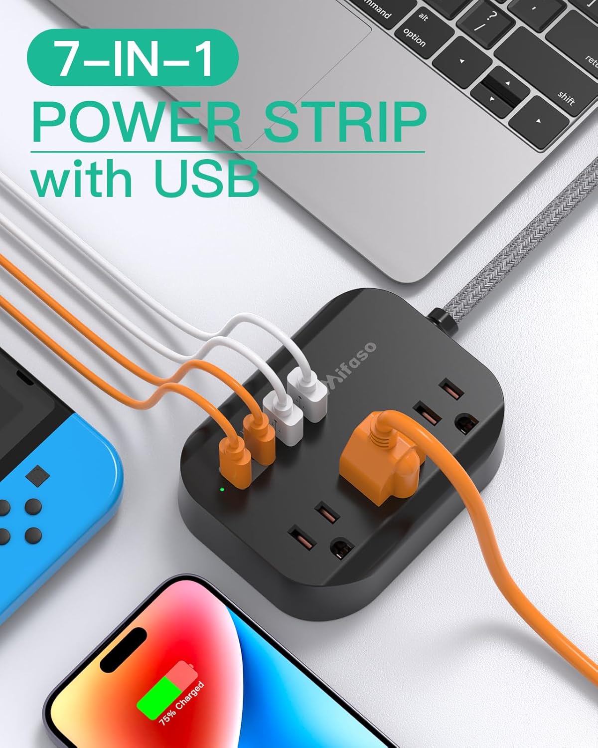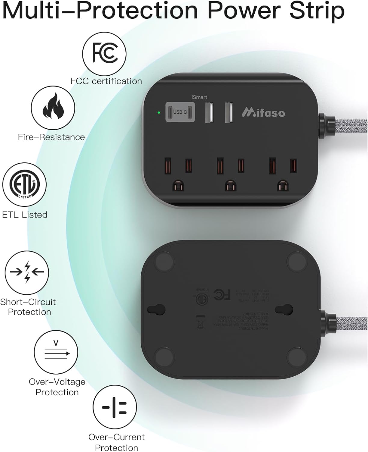 Travel Essentials – Mifaso Power Strip with USB, Compact Flat Plug Extension Cord 5ft with 3 Outlets 4 USB Ports, Non Surge Cruise Must Haves, Cruise Ship Essentials, Dorm Room, Apartment Essentials
