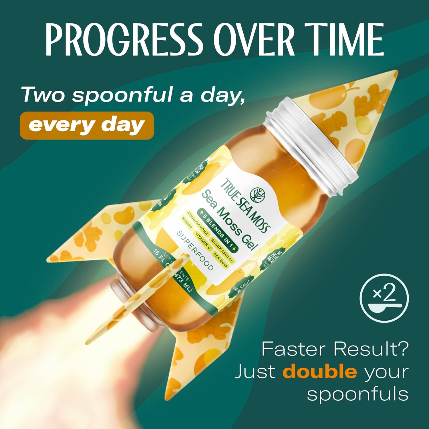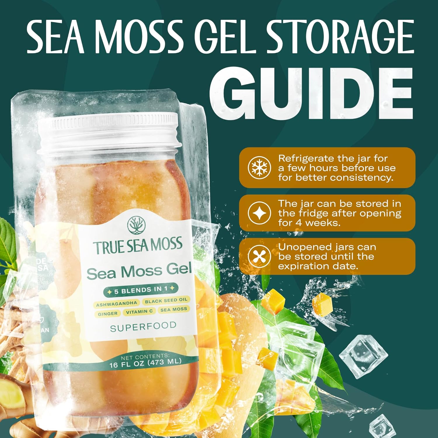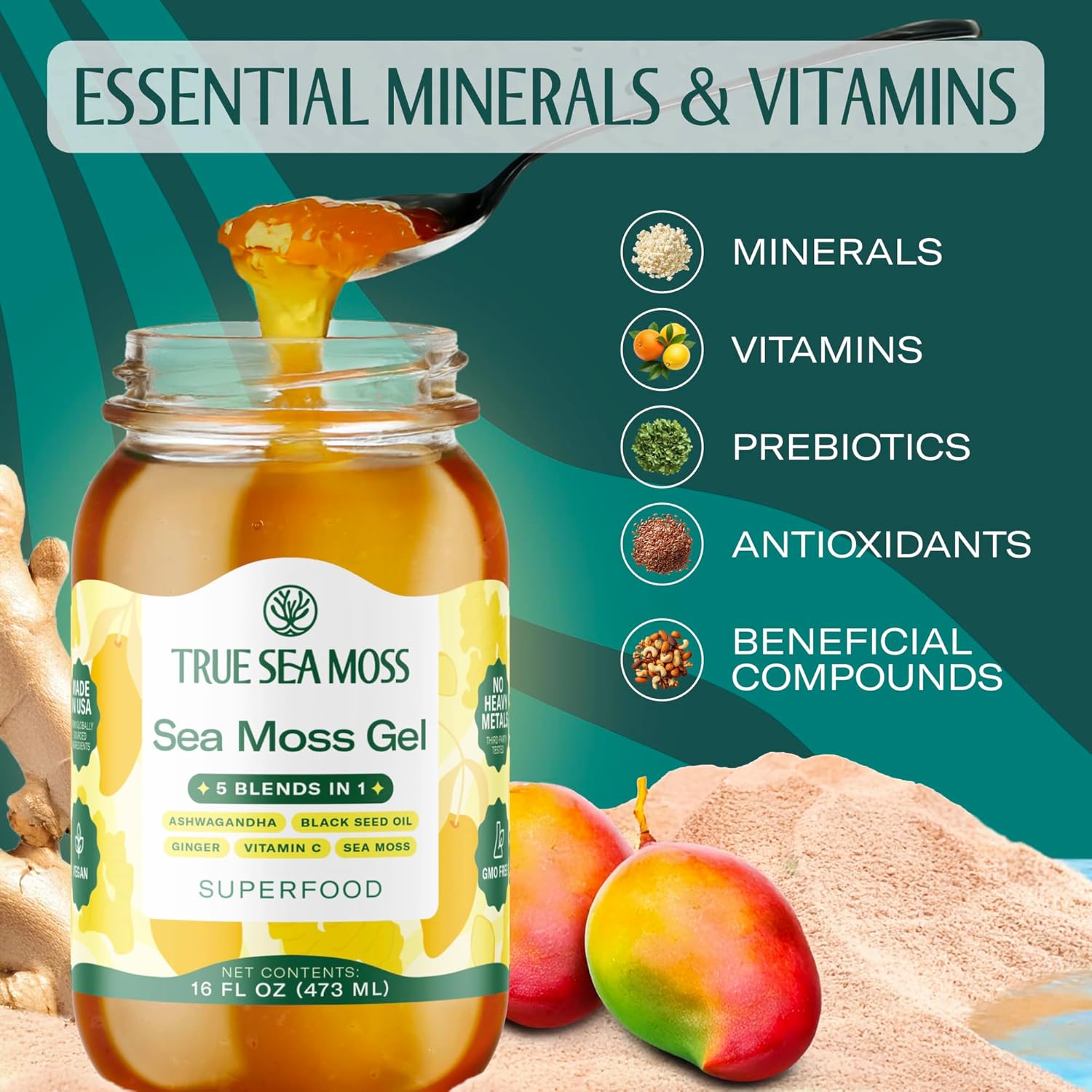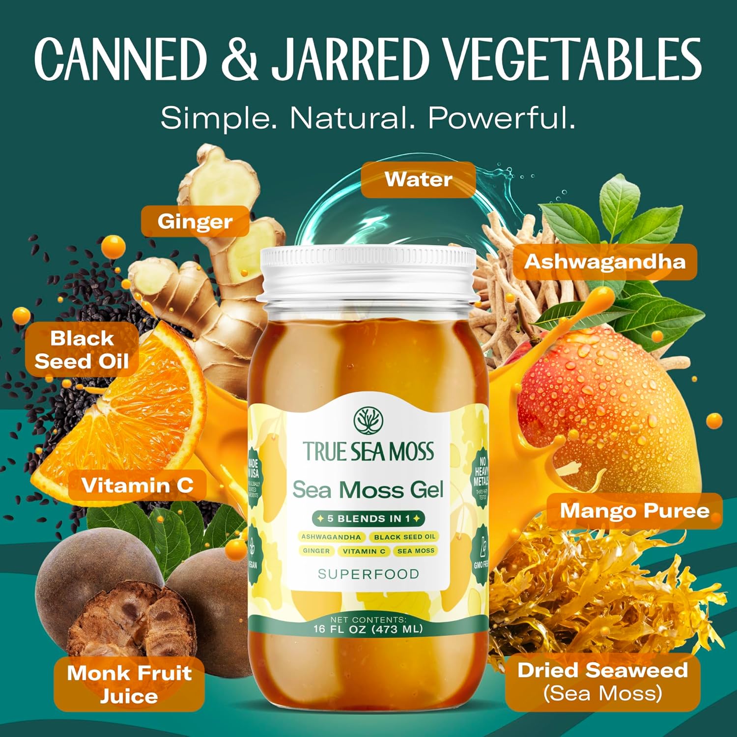 TrueSeaMoss Sea Moss Gel – Made in USA – 5-in-1 Formula – Wildcrafted Seamoss, Ashwagandha & Jarred Vegetables – Ashwagandha, Pack of 1 (Labels may Vary)
