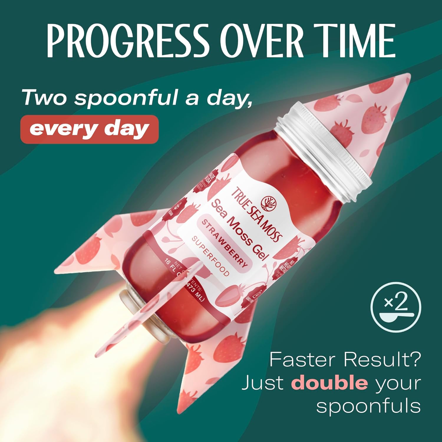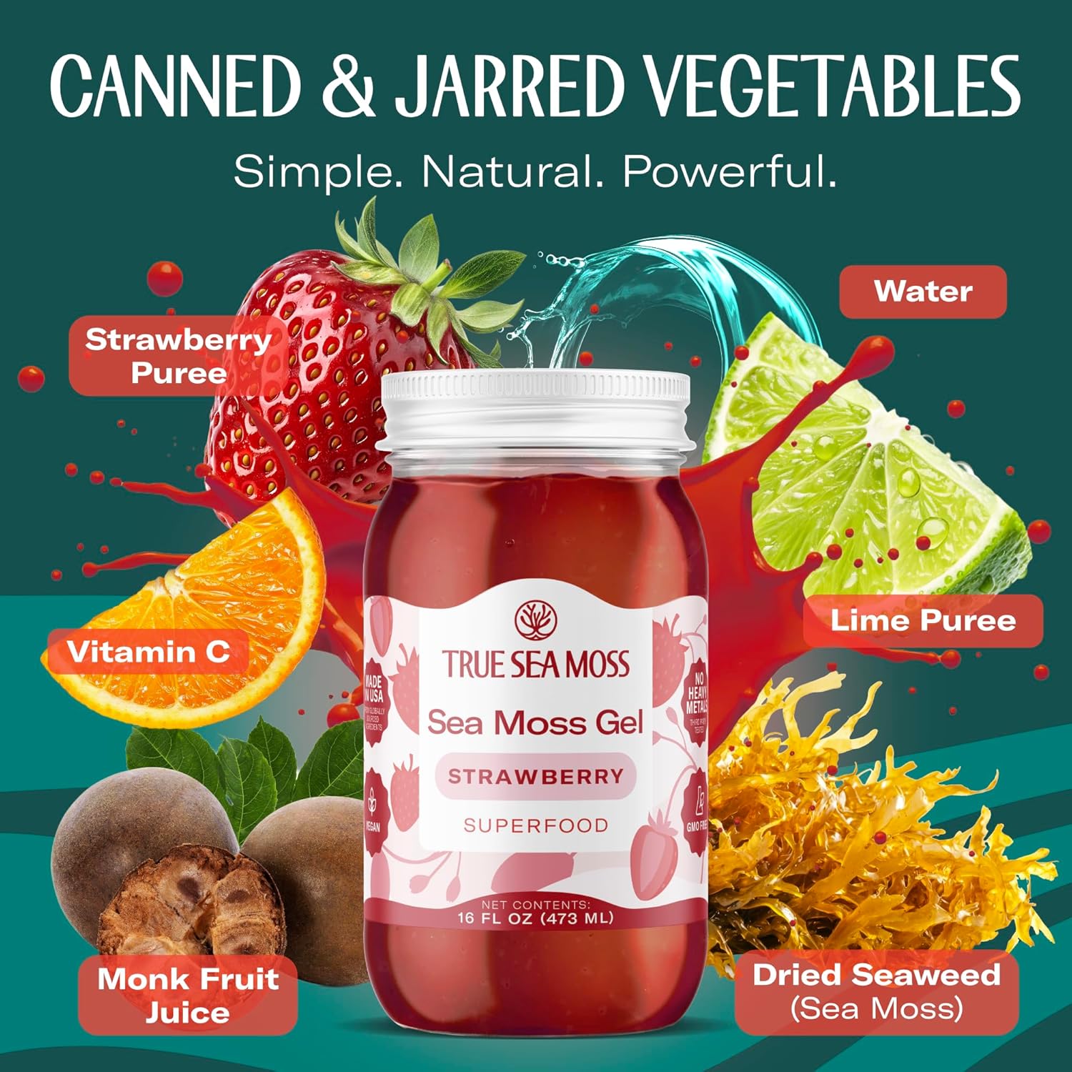 TrueSeaMoss Sea Moss Gel – Made in USA – Wildcrafted Seamoss, Fruits & Jarred Vegetables – Strawberry, Pack of 1 (Labels may Vary)