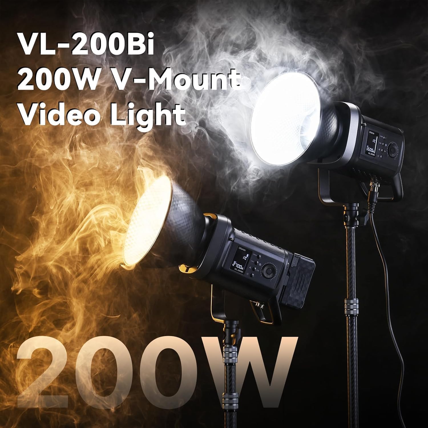 ULANZI VL-200Bi Video Light, 200W Bi Color LED Video Light COB Fill Light Continuous Output Lighting with APP Control, 2700K-6500K, 6 Scenes Bowens Mount Studio Light for Photography Video Recording