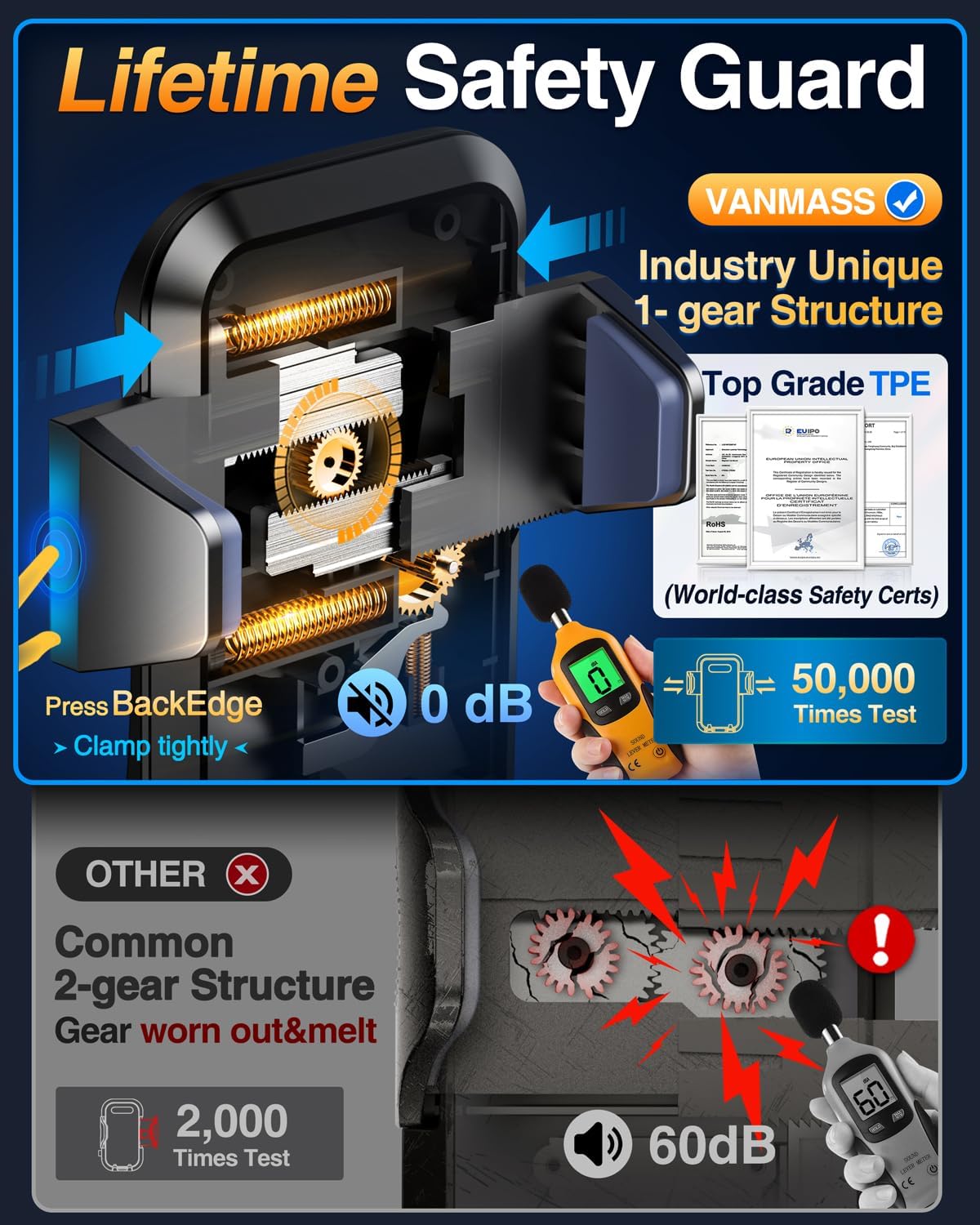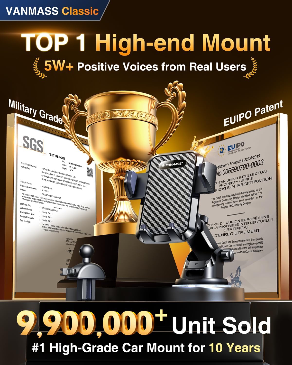 VANMASS【85+LBS Strongest Suction & Military-Grade 2026 Ultimate Car Phone Mount【Patent & Safety Certs】 Cell Phone Holder Truck for Dashboard Windshield Vent for iPhone 17 Pro Max 16 15 for Samsung