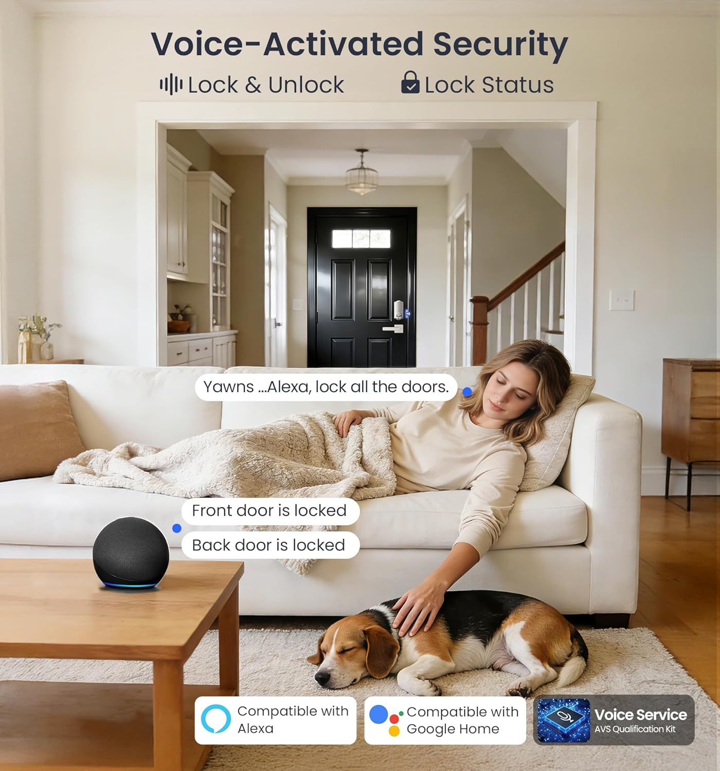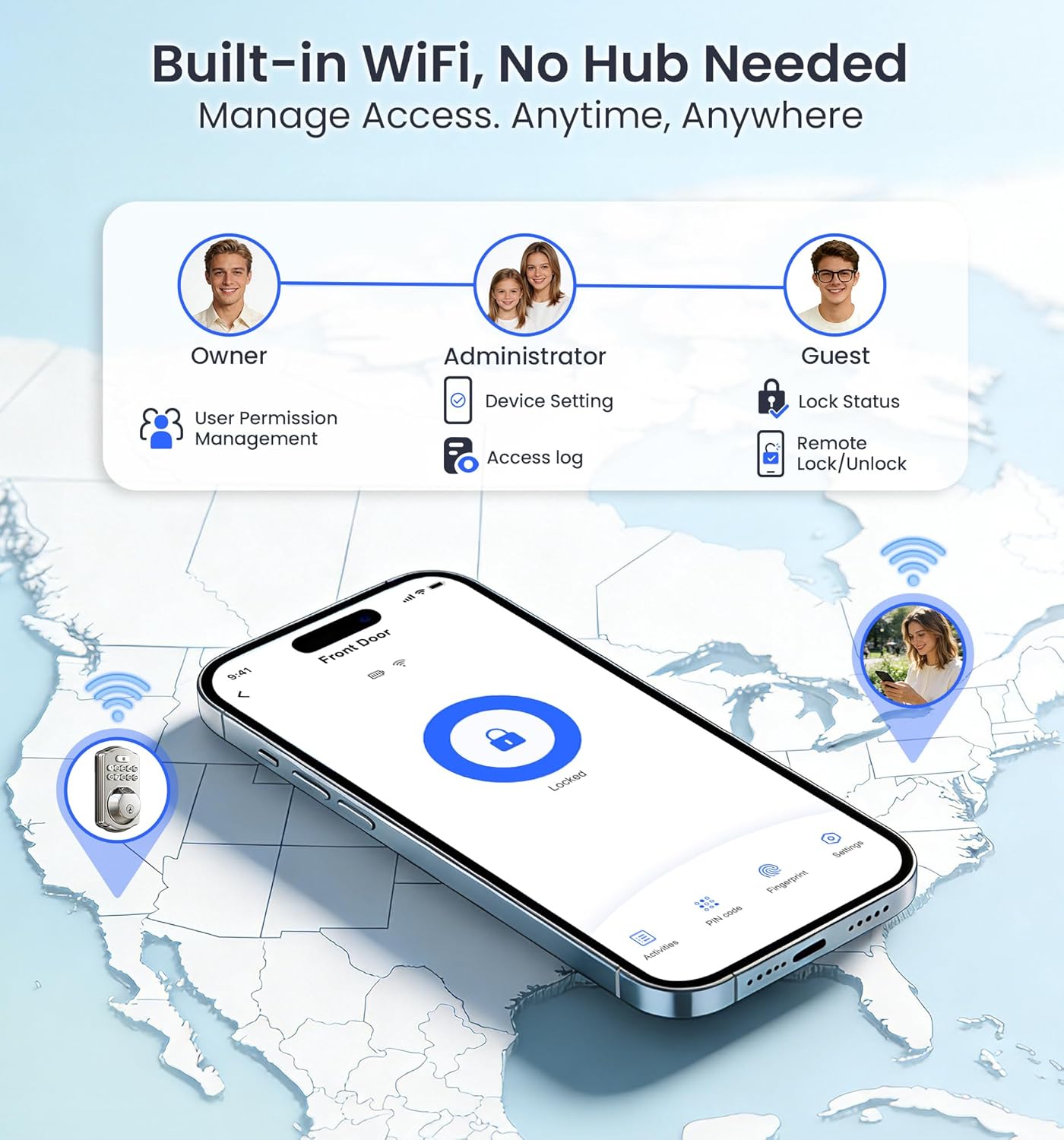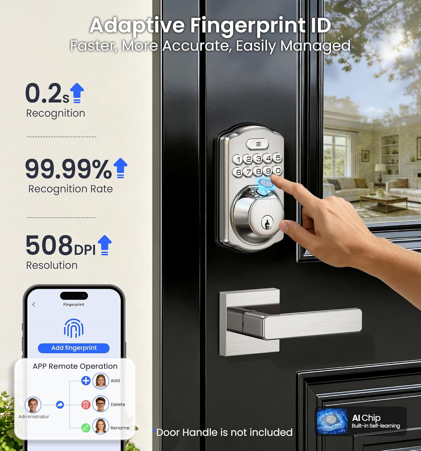Veise VE012W Built-in WiFi Fingerprint Smart Lock, App Remote Control, Compatible with Alexa & Google Assistant, Keyless Entry for Front Door, Digital Keypad Deadbolt, Auto Lock, Satin Nickel