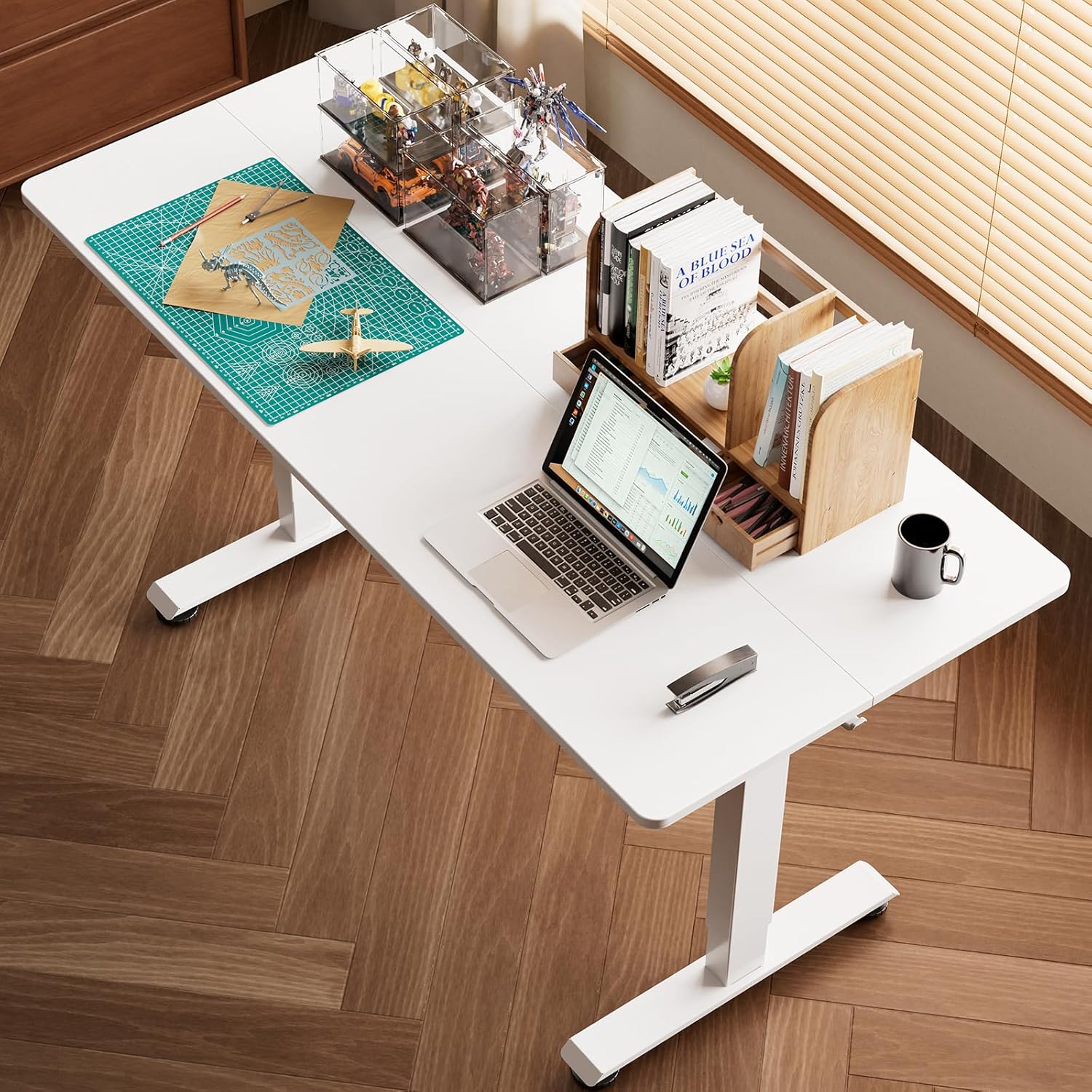 Veken 55 Inch Large Electric Standing Desk,Sit to Stand Up, Heights Adjustable, Work Home Office Computer Table for Study, Walking Pad, Writing, and Games, Wooden Desktop Desks, White