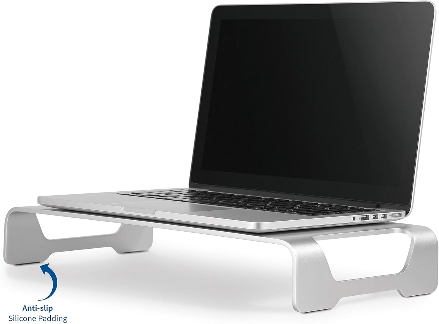 VIVO Silver Aluminum 16 inch Wide Monitor Riser, Ergonomic Desktop Stand, Modern Tabletop Organizer STAND-V000H