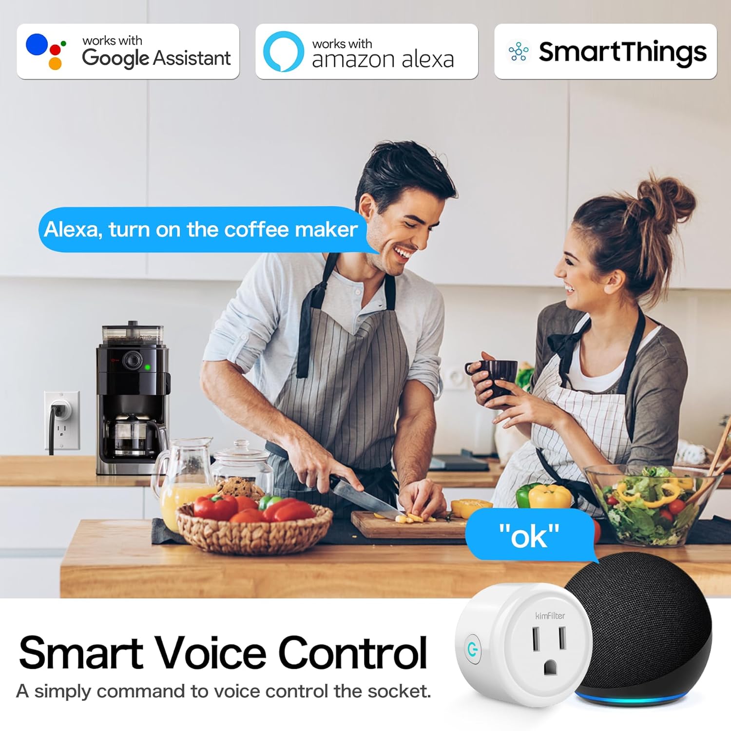 WiFi Smart Plug, Wireless Plugs Outlet Compatible with Alexa & Google Voice Assistant, App Controlled Outlet with Timer Function, 2.4GHz Only Wi-Fi Smart Socket, Smart Plug Timer for Home