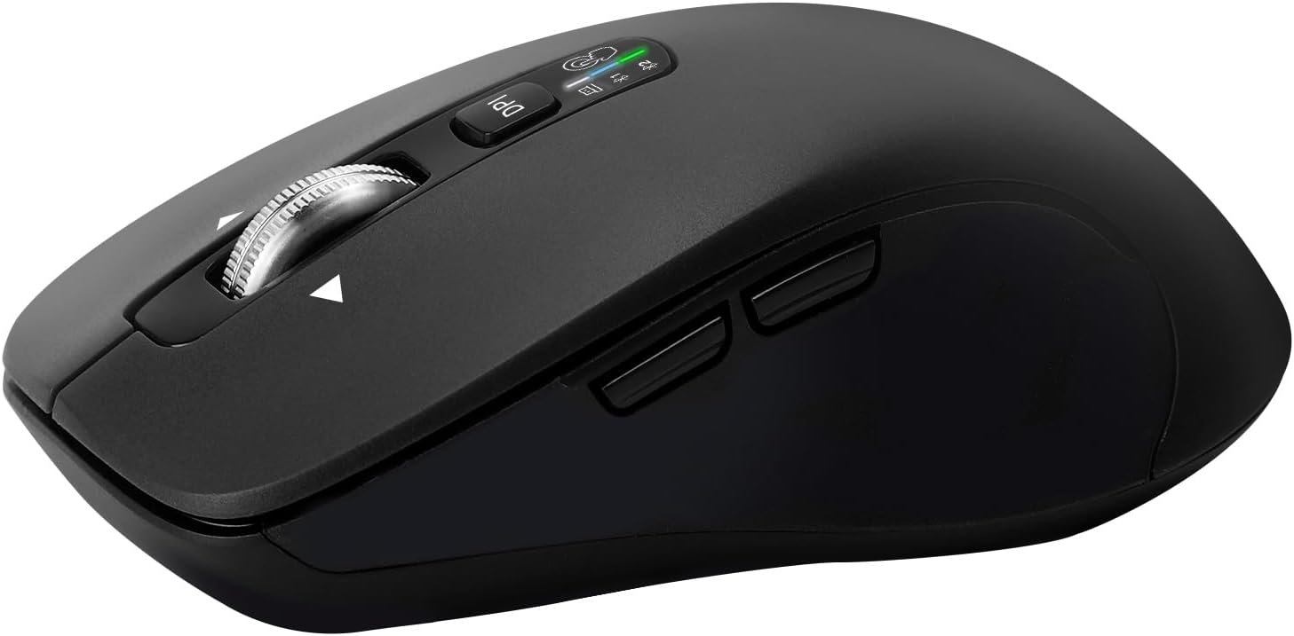 Wireless Bluetooth Mouse (USB + BT1 + BT2), Full Size, 4-Way Scrolling, Multi-Device Silent Mouse for Computer, Laptop, iPad, MacBook (Black)