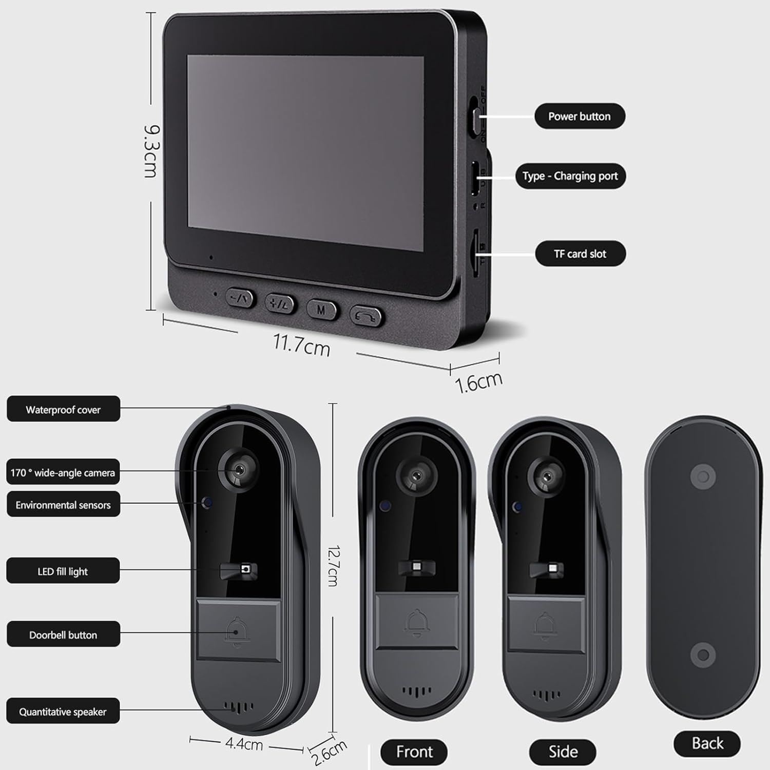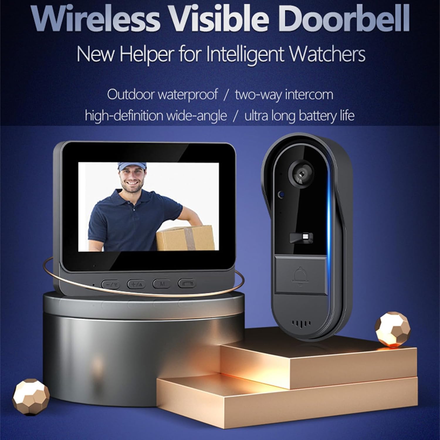 X8 Video Doorbell Camera, X8 Waterproof Video Doorbell with 4.3-Inch Indoor Monitor, Wireless Waterproof Smart Doorbell Kit, Two-Way Audio Intercom, HD Night Vision, Home Security