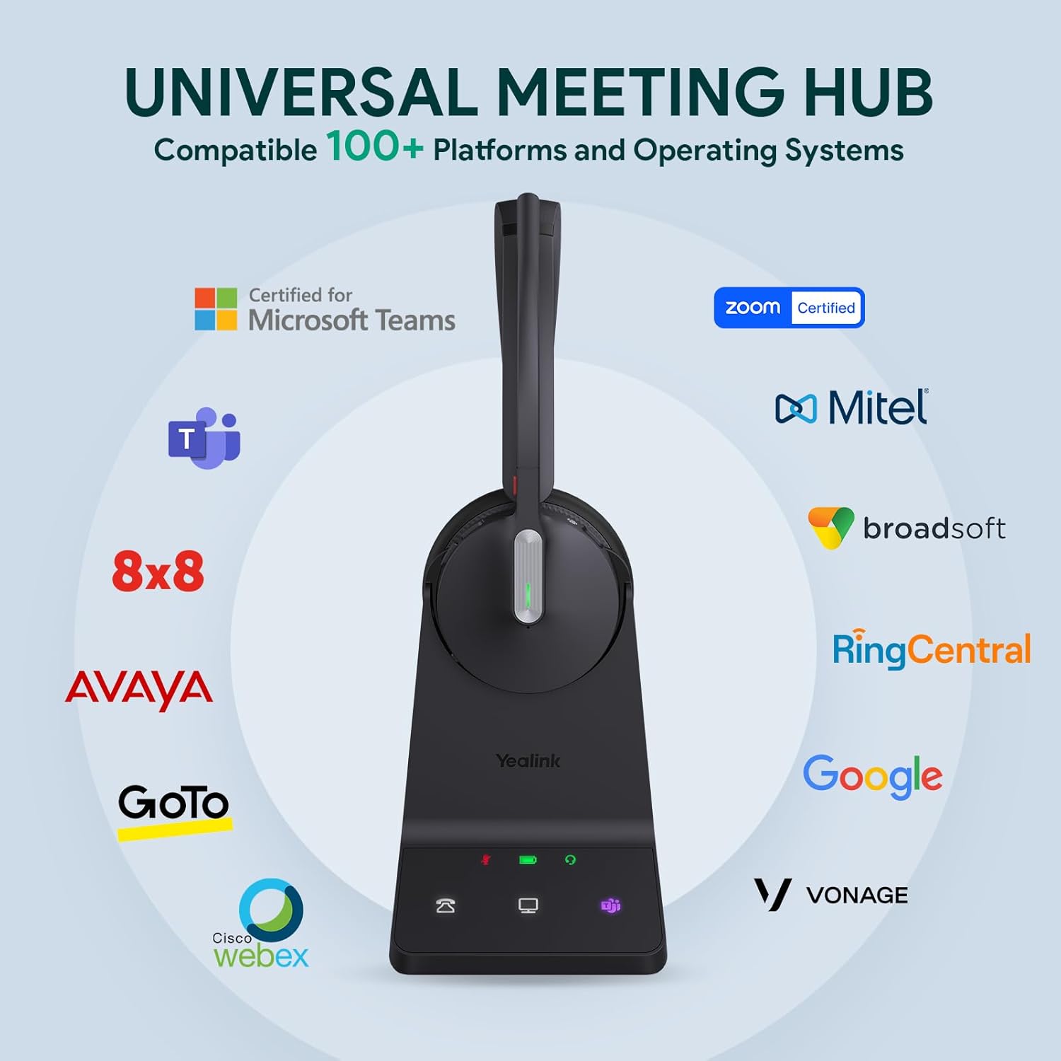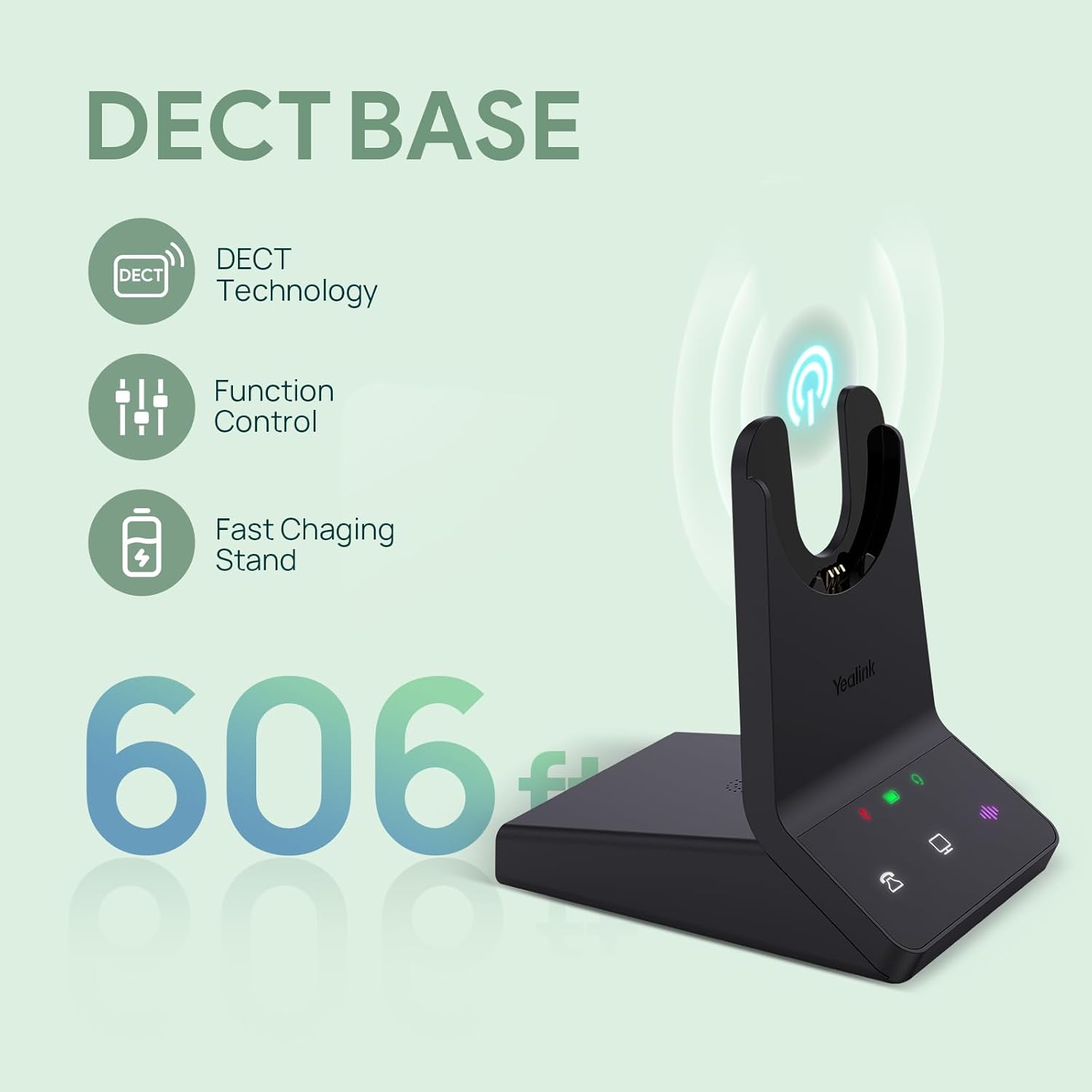 Yealink WH64 DECT & Bluetooth Mono UC Wireless Headset, 606ft Long Range Work Headphones, 3X Noise Cancelling Mic, 26H Calls,Ringtone, Office Single On Ear Headsets (Desk Phone,Laptop,PC,Cellphone)